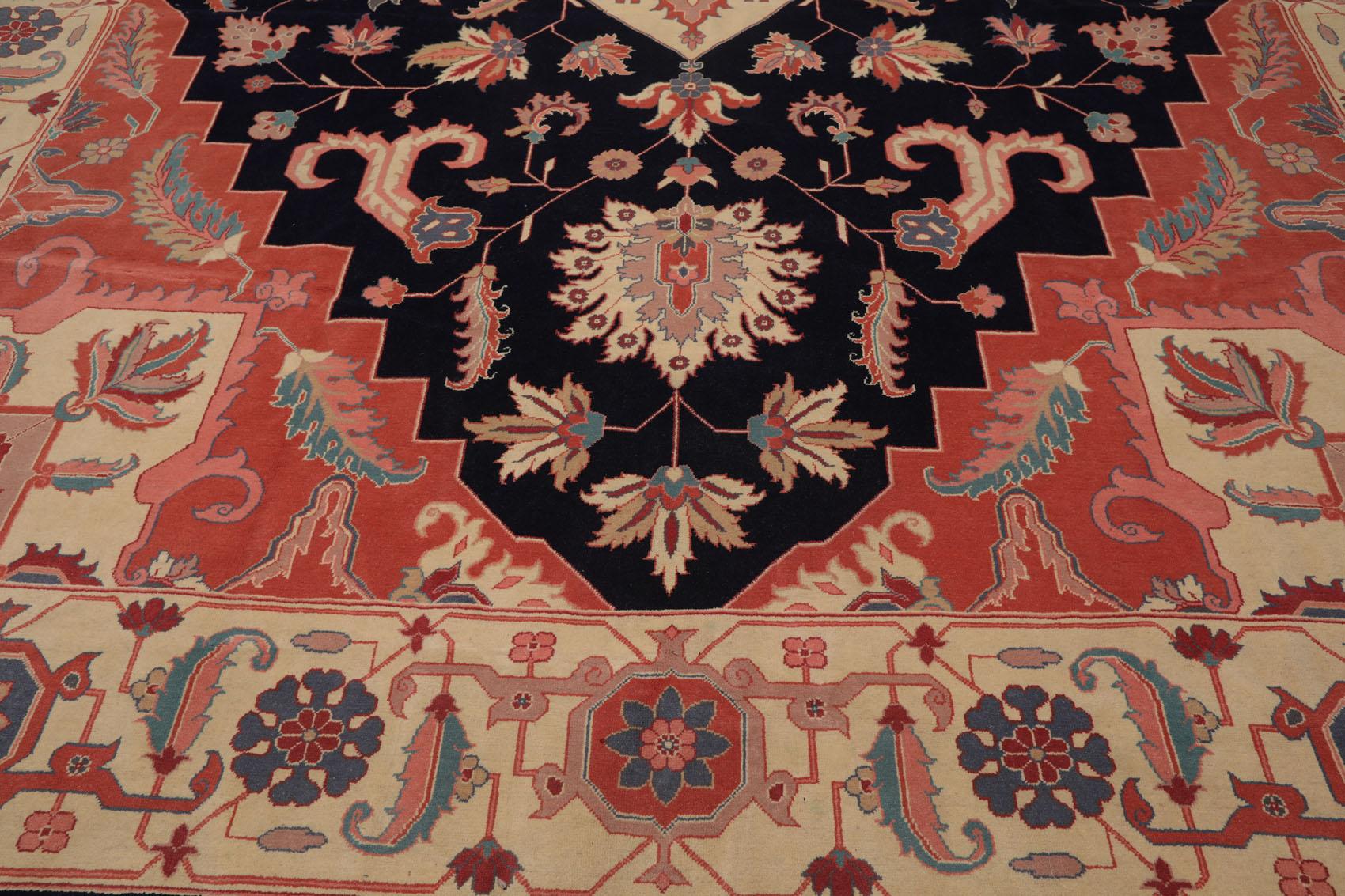 11'8" x 17'10" Palace Hand Knotted Wool Romanian Herizz Oriental Area Rug Navy