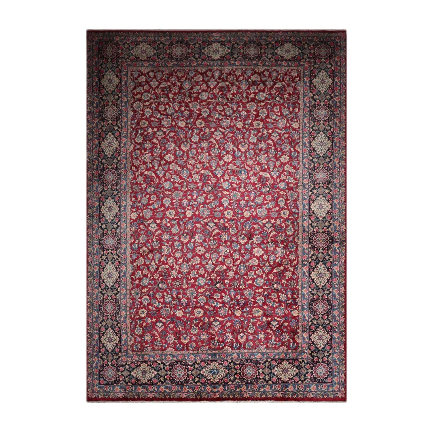 13'x18'8'' Palace Burgundy, Navy Hand Knotted Persian 100% Wool Traditional Mashad 200 KPSI Oriental Area Rug