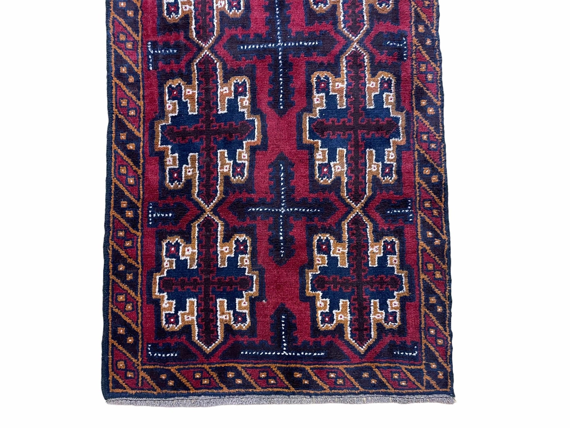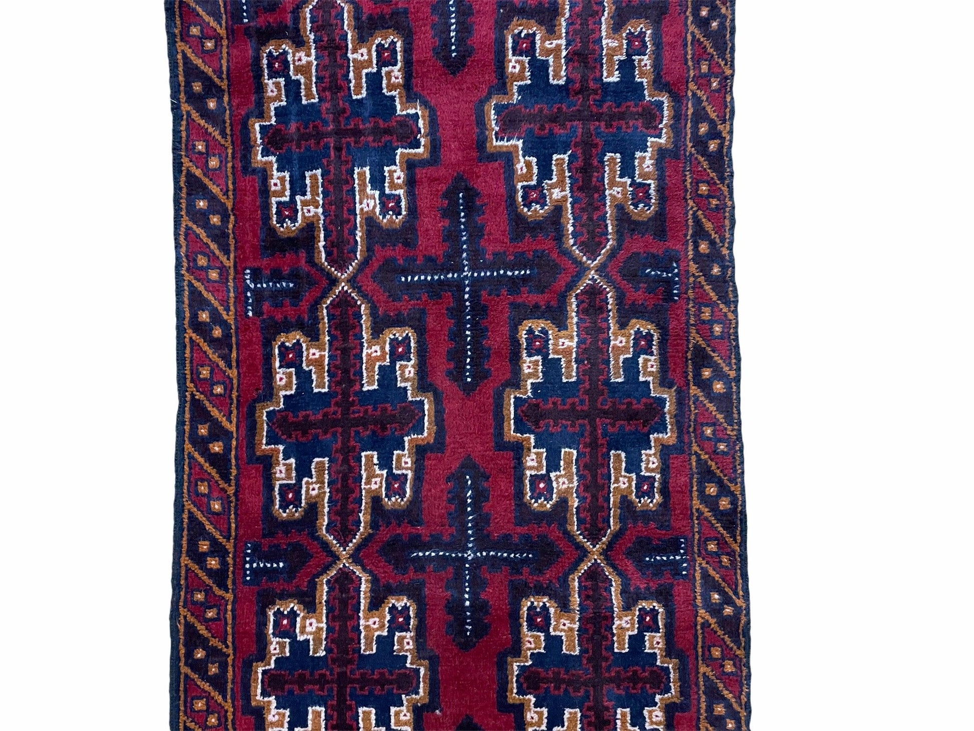 2' 7" X 4' 6" Vintage Handmade Tribal Wool Rug Balouchi Rug Afghan Rug Red Blue