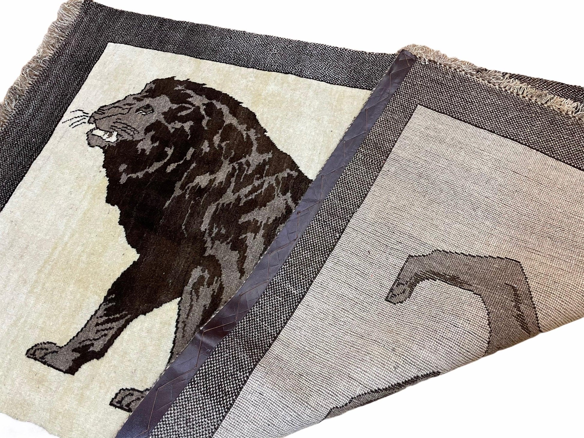 | Condition/Notes | Great condition Handmade Rug with nice design of a charming Lion in a beige background. Made out of fine Zagros Mountain wool. All organic dyes. |
