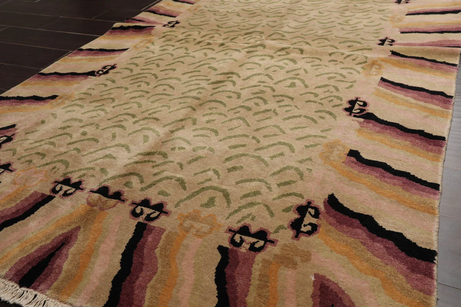 3'11 x 7' Beige, Sage Hand Knotted Tibetan 100% Wool Michaelian & Kohlberg Modern & Contemporary Oriental Area Rug