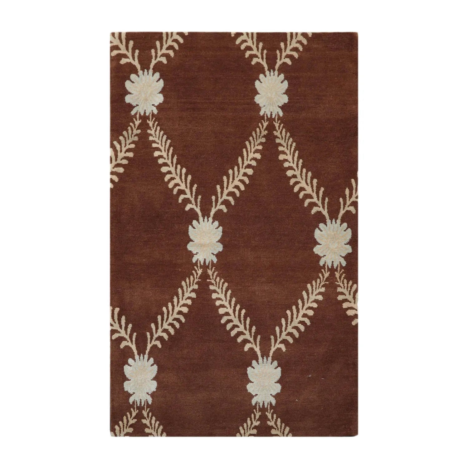 3x5 Hand-Knotted Tibetan Terra Trellis Floral Wool & Silk Brown Are Rug