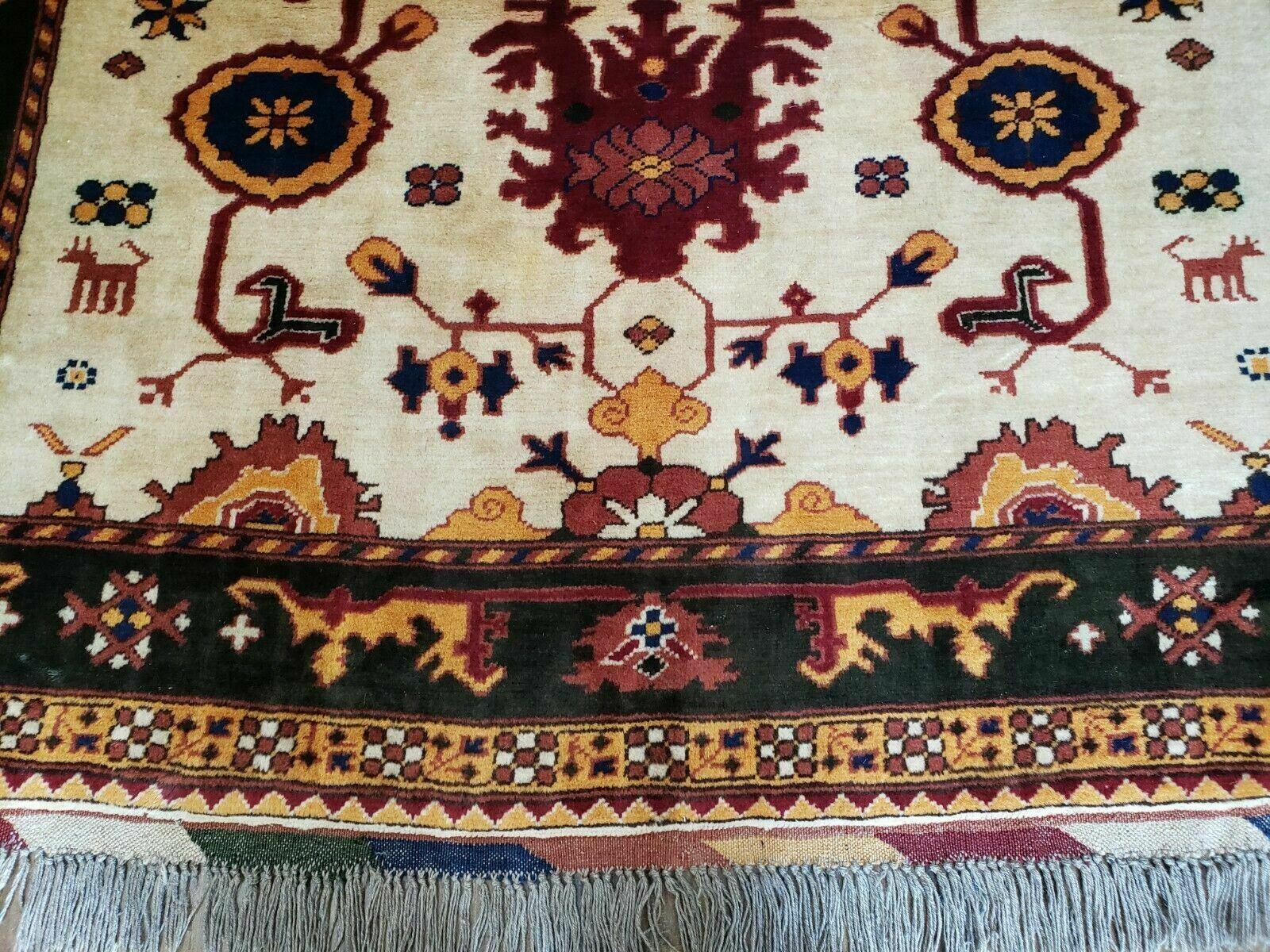 5' X 6' Vintage Handmade Knotted Turkish Kazak Pattern Wool Rug Bohemian Boho Interior Design