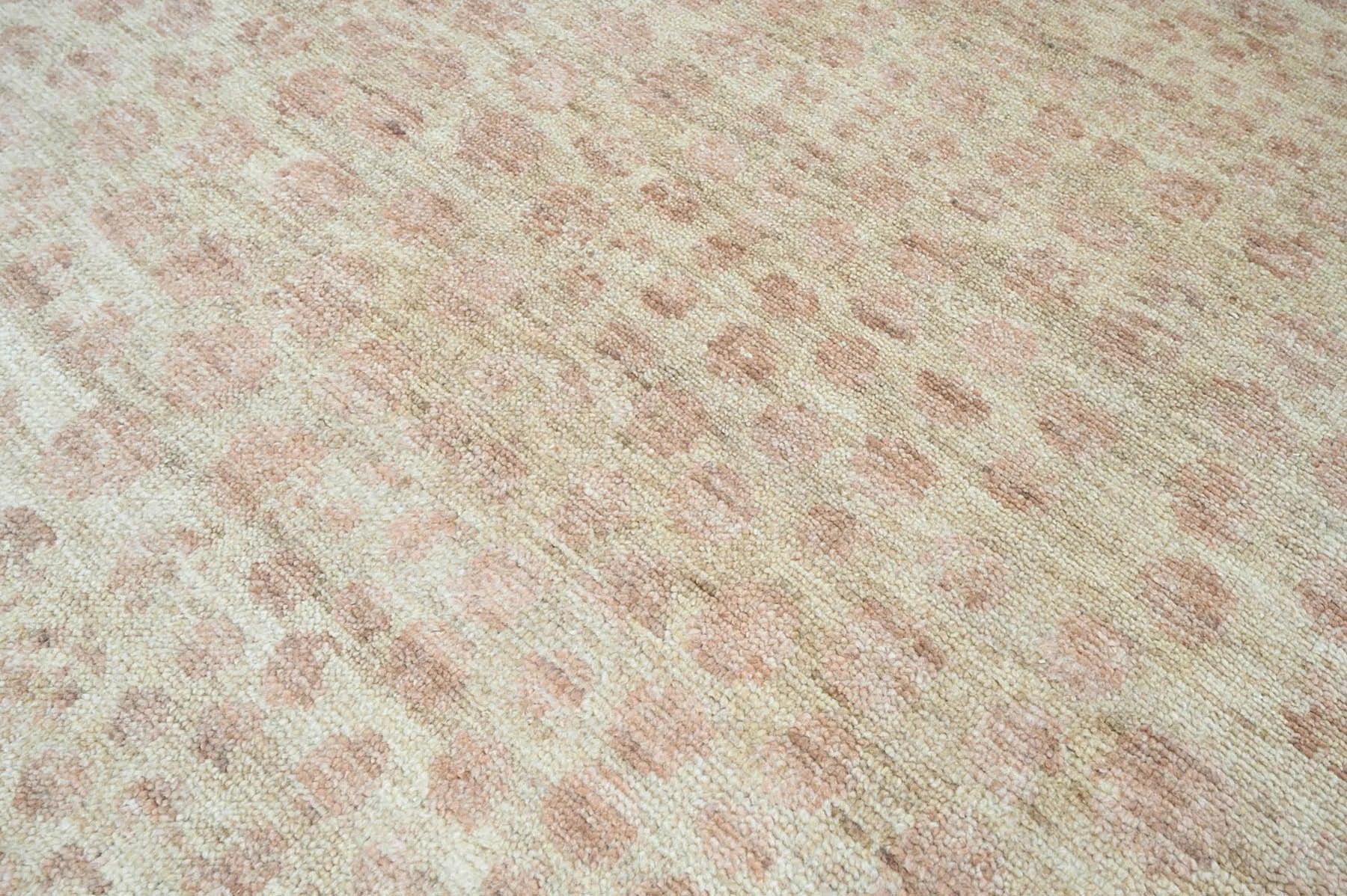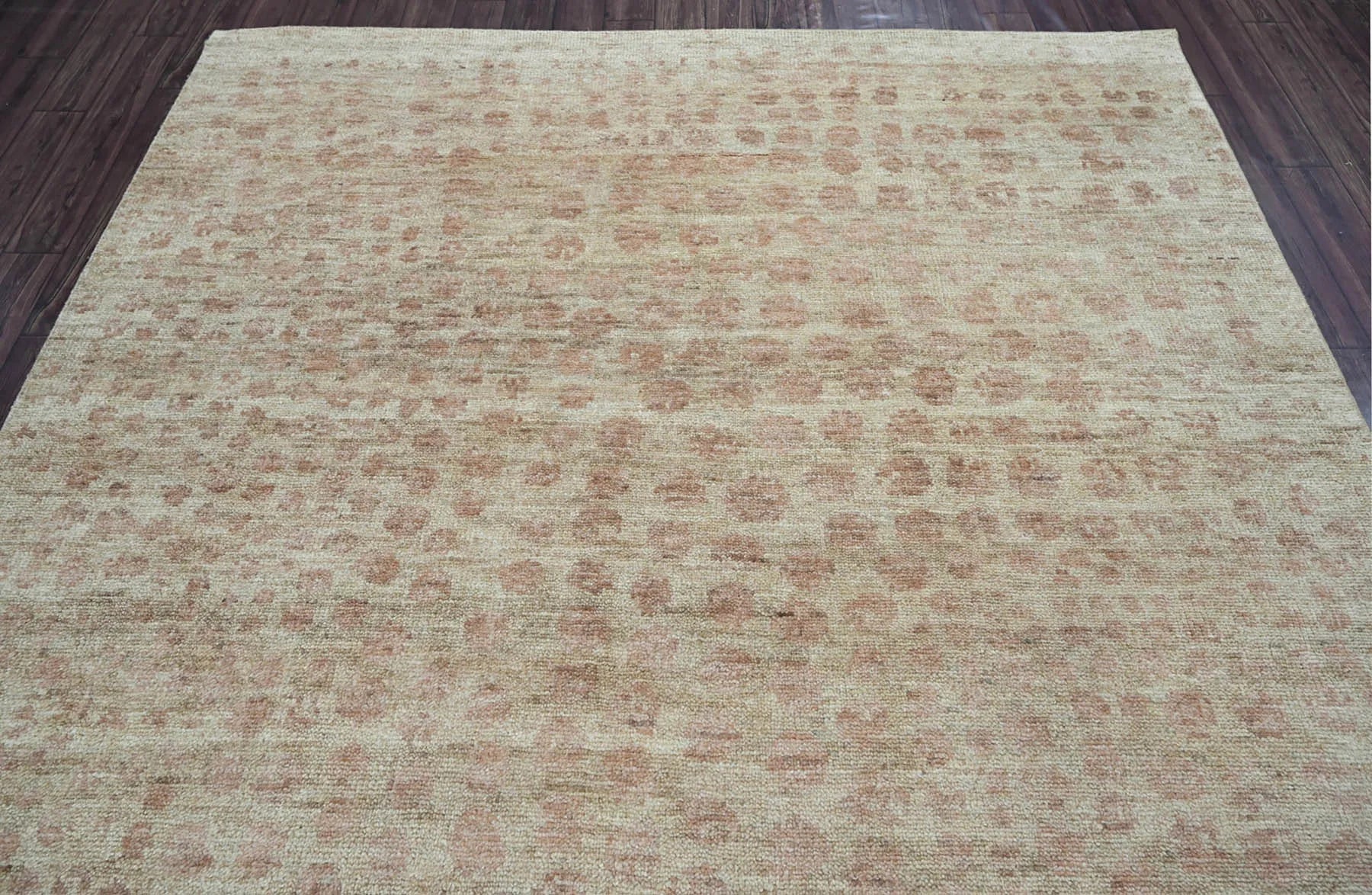 This is a beautiful Beige & Rust Color Knotted LoomBloom Contemporary Turkish Oushak 100% Wool Rug from India. The rug uses the traditional weaving technique of authentic Oushak rugs from Turkey. The wool not only adds to rug's durability, but also provides dirt repelling quality and thermal insulation. This rug rejects heavy ornamentation in favor of contemporary and modern designs motifs. Its trendy color combination elevates the color palette from mundane to chic and glamorous.