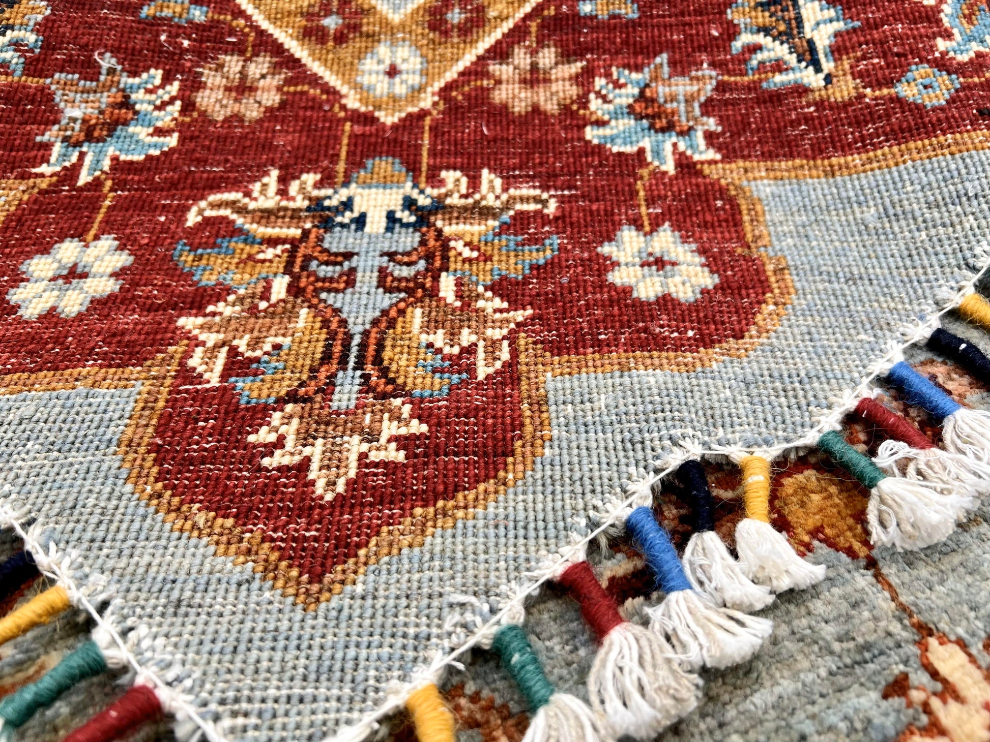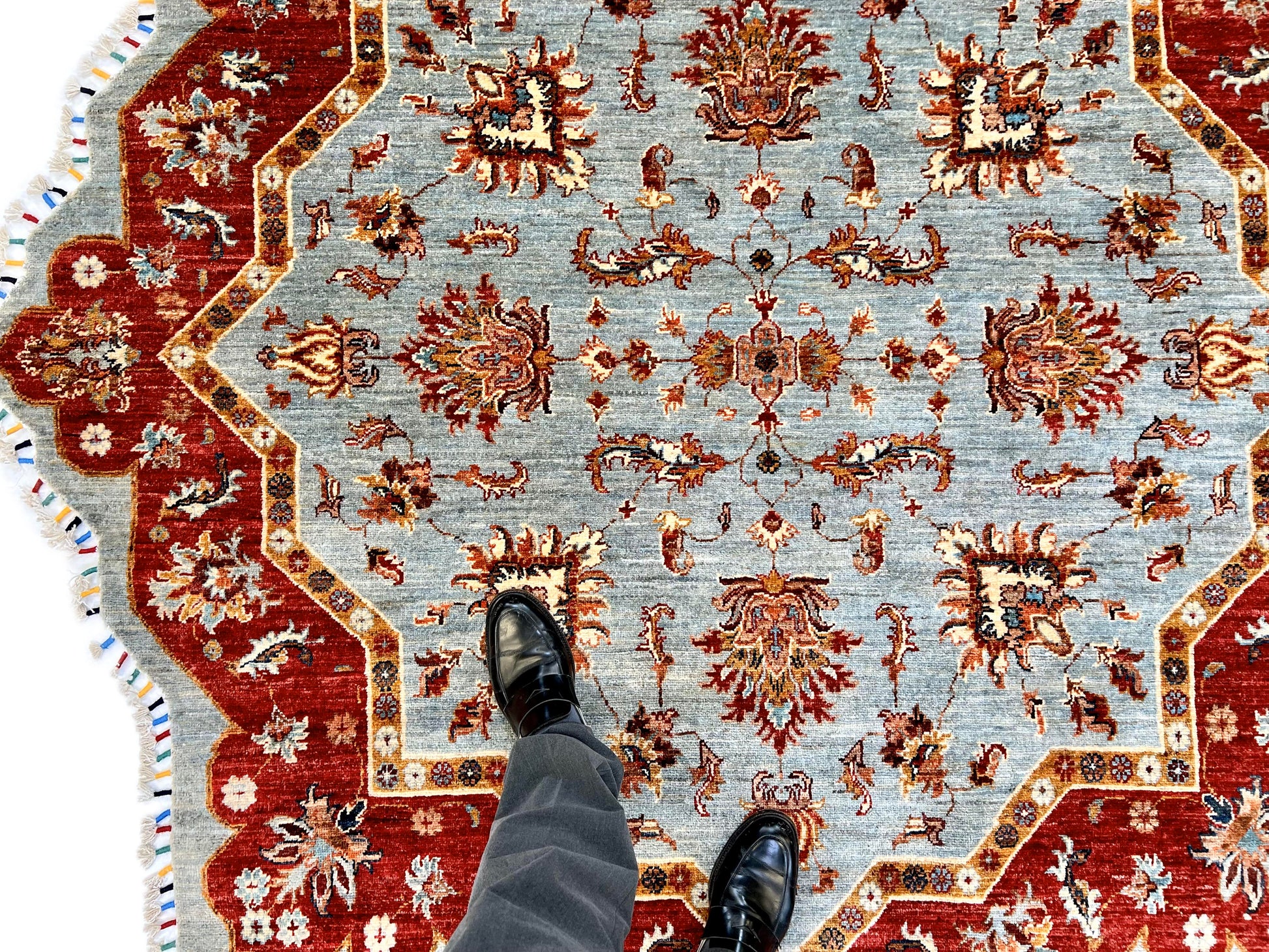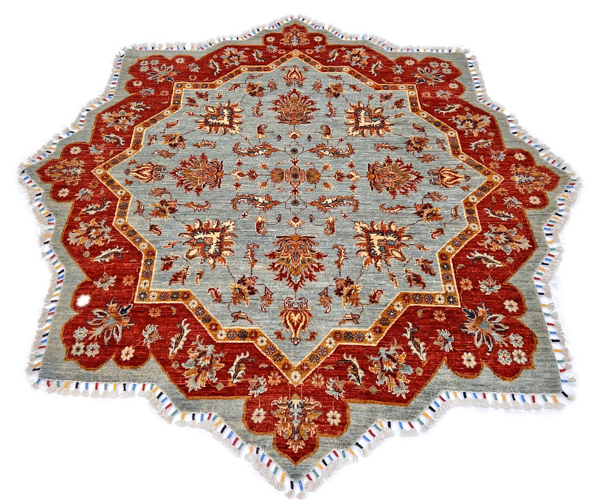 Afghan Made Scalloped Edge Rug (6'07"x6'08") gray/red
