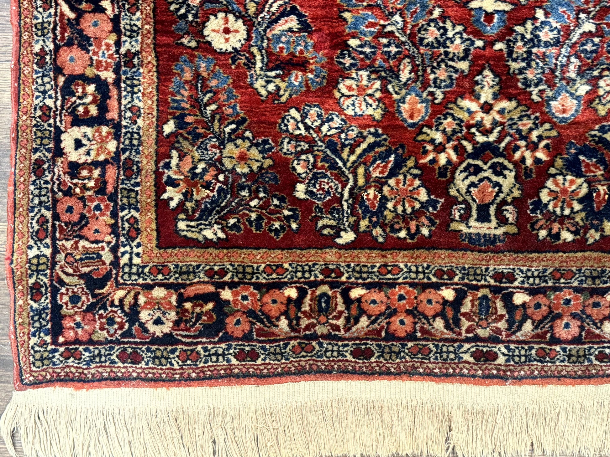 Antique Persian Sarouk Rug 3x5, Red, Floral, 200 KPSI