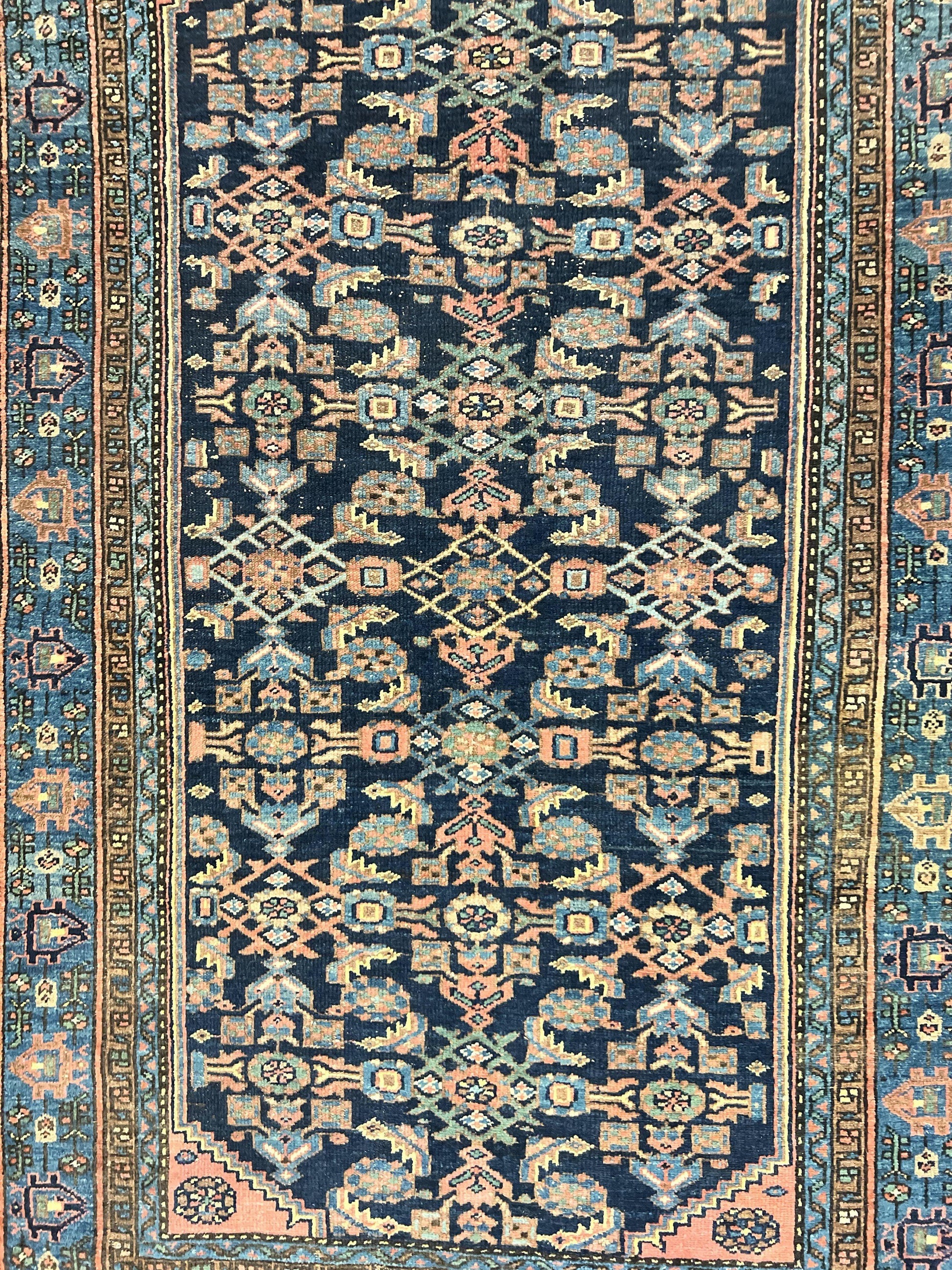 Antique Persian Tribal Rug 5x7, Navy Blue & Pink, Hand Knotted Handmade 1920s Wool Rug, Allover Pattern, Persian Hamadan Rug
