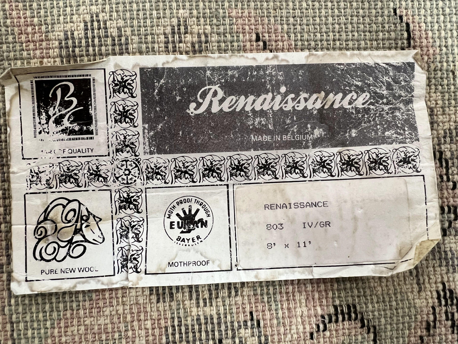Belgium Power Loomed Rug 8x11, Ivory and Green, Wool Carpet, Floral