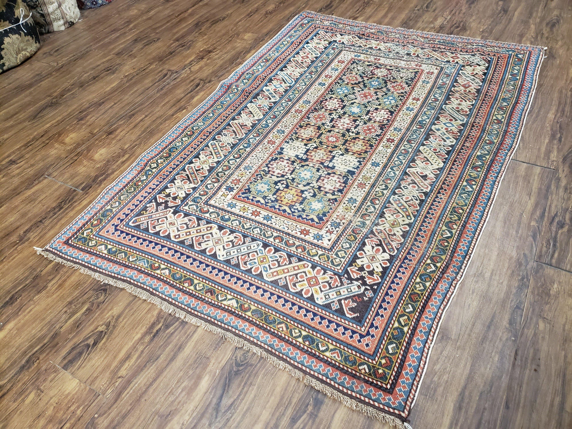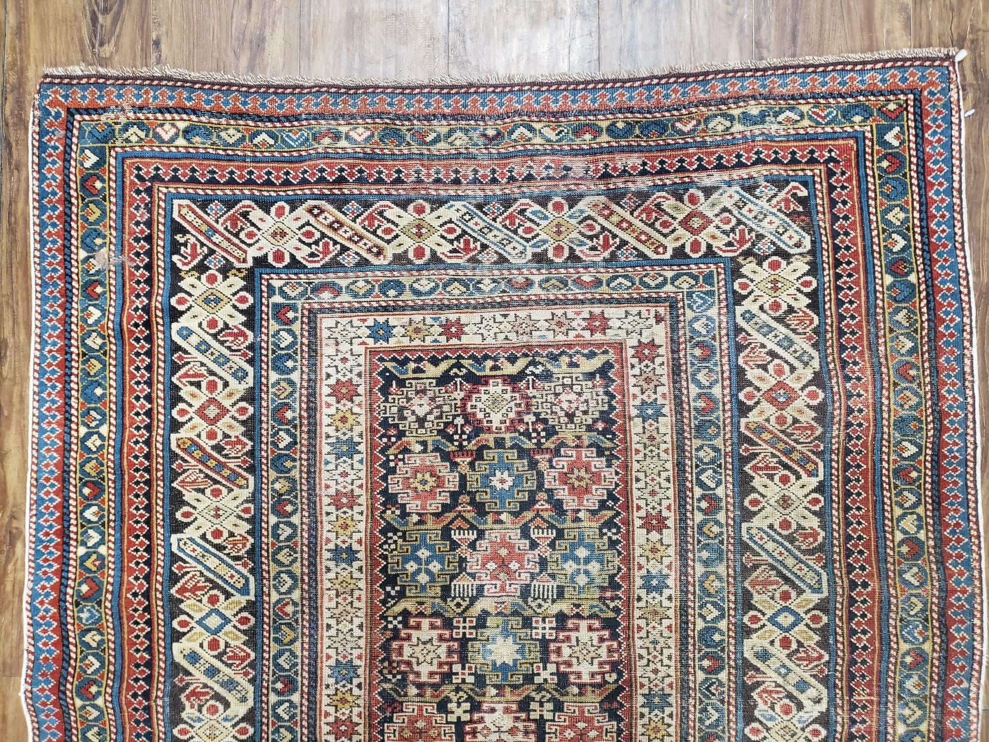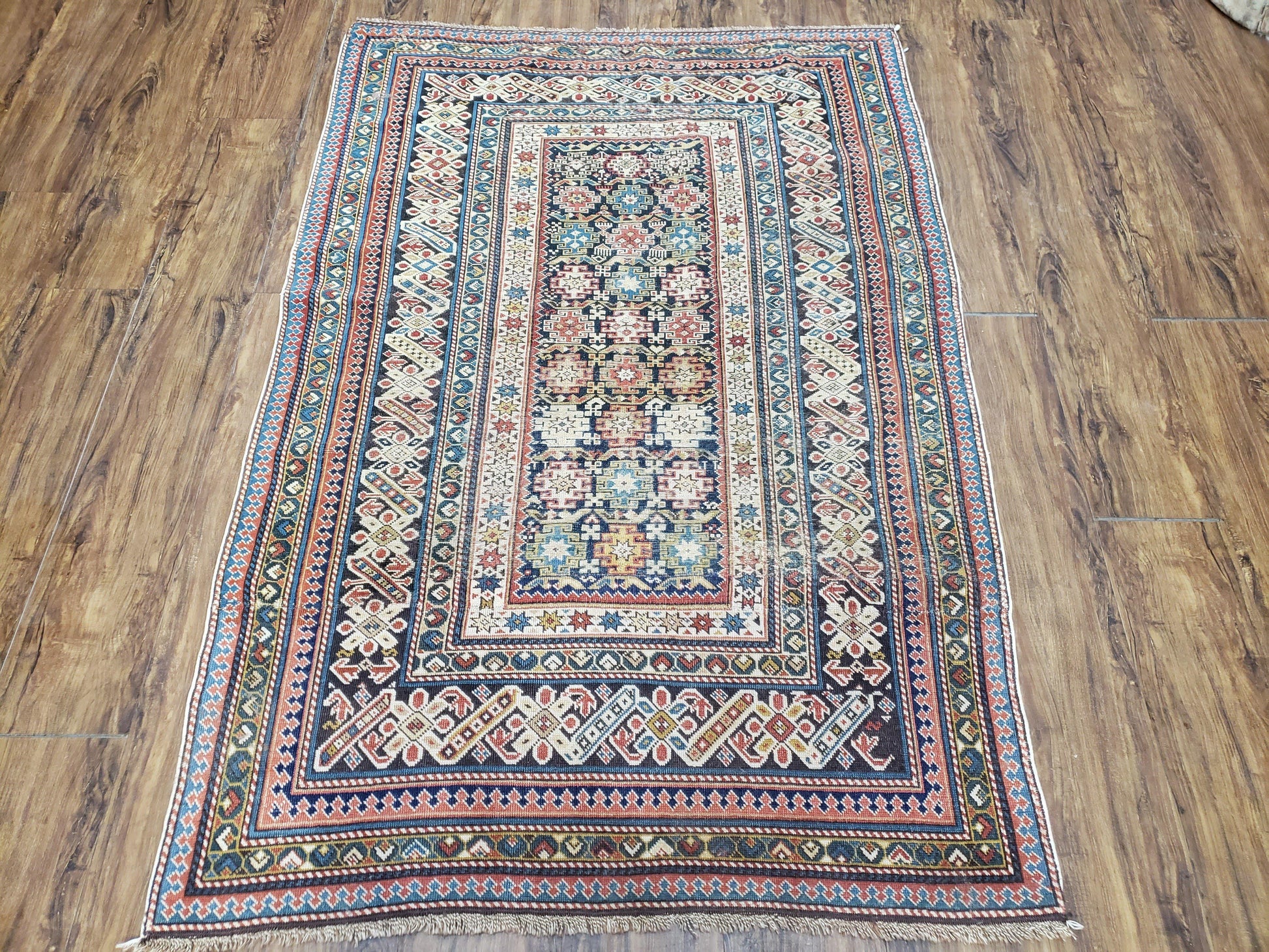 | Condition/Notes | A beautiful antique Caucasian oriental rug circa 1920s in good condition. Free of stains, odors, discolorations, tears, etc. Has some old repairs and areas with medium/low pile. Recently cleaned and ready to be enjoyed in your space. |