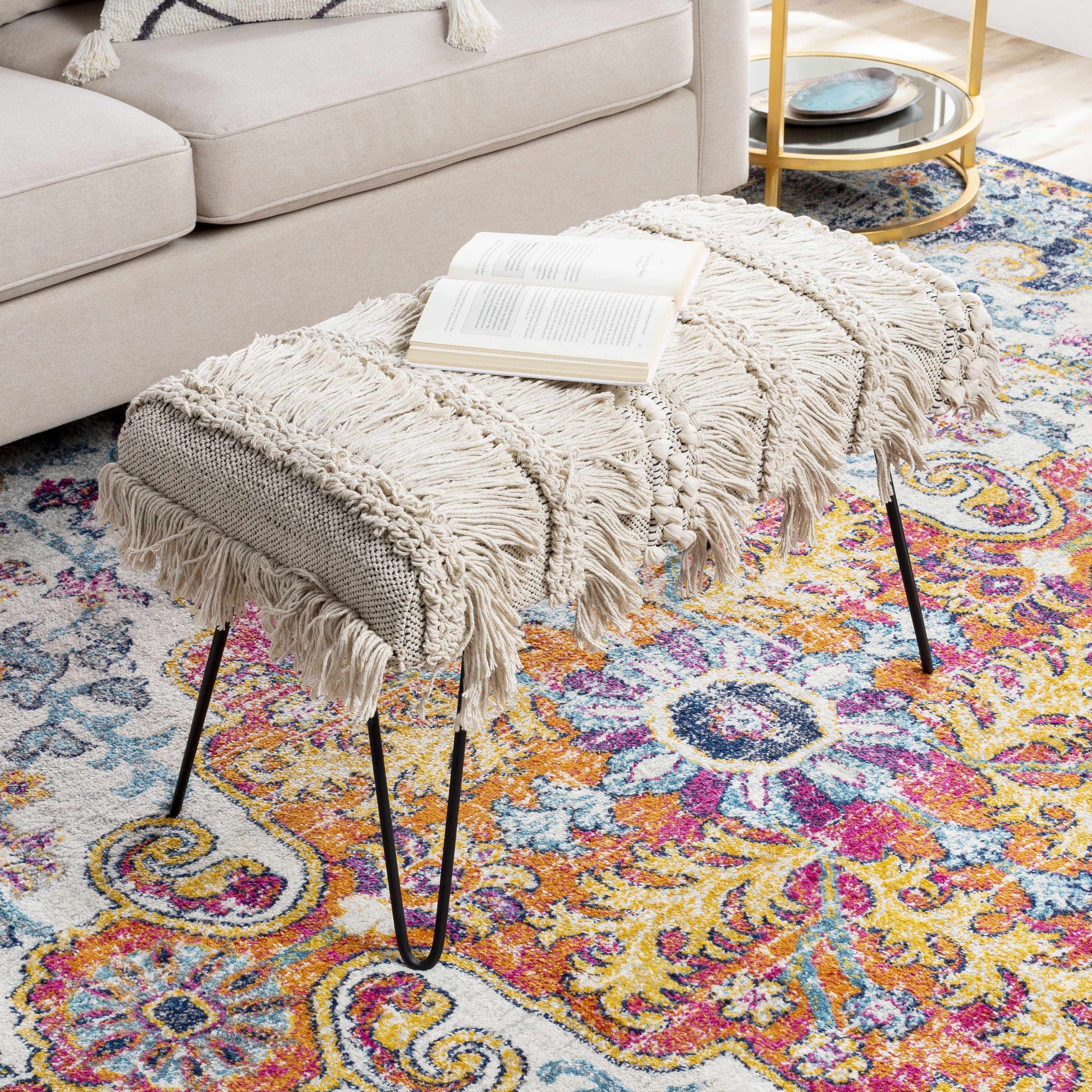 Whether you're leaning into an eclectic, boho vibe or looking to soften a modern room with layered texture, this cream-colored bench brings warmth and movement to any interior. The dramatic fringe, looped detailing, and rich texture give it a designer edge while still feeling welcoming and casual. Style it at the end of your bed, in a hallway, under a window, or even as a decorative coffee table alternative with a tray on topits as adaptable as it is beautiful.