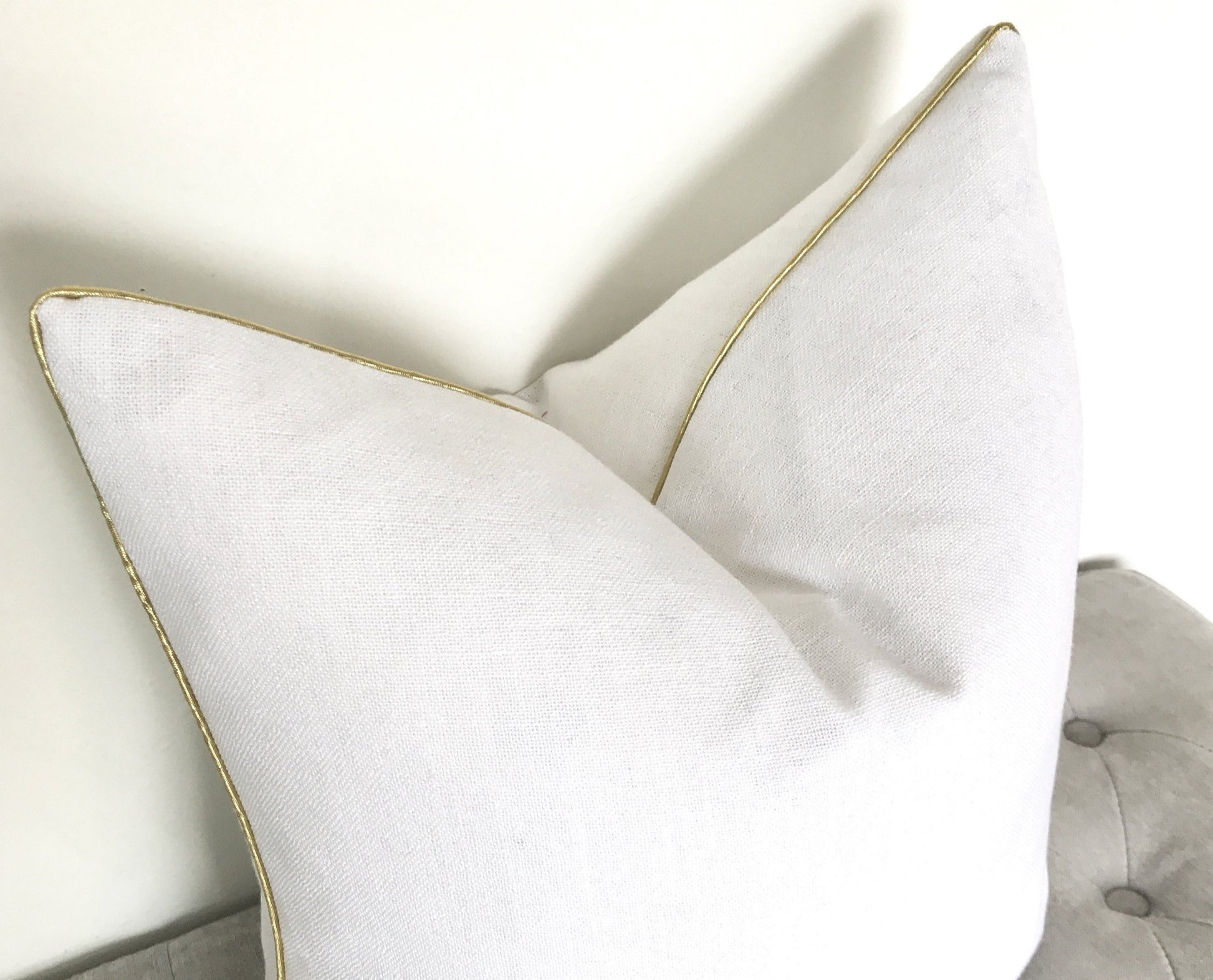 White Linen pillow cover with gold piping. Add just a touch of elegance! ✨