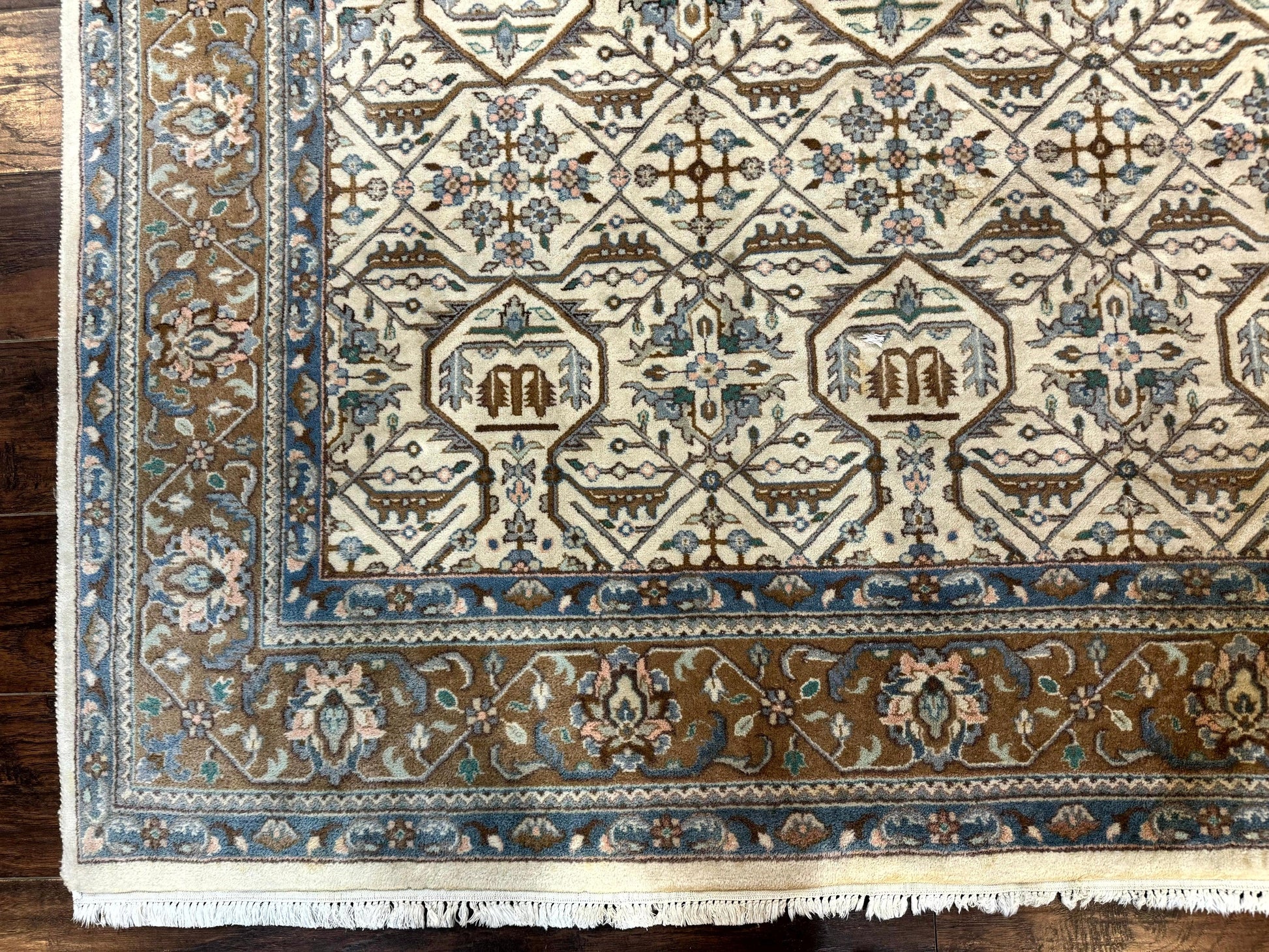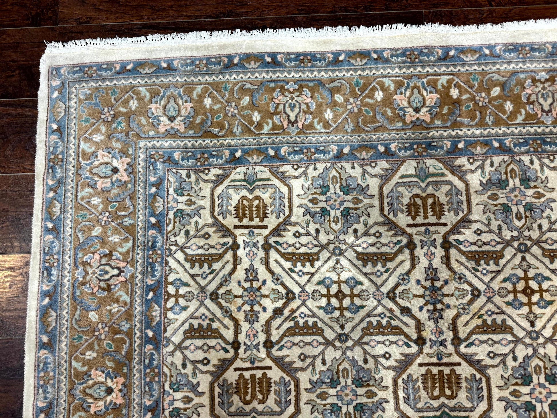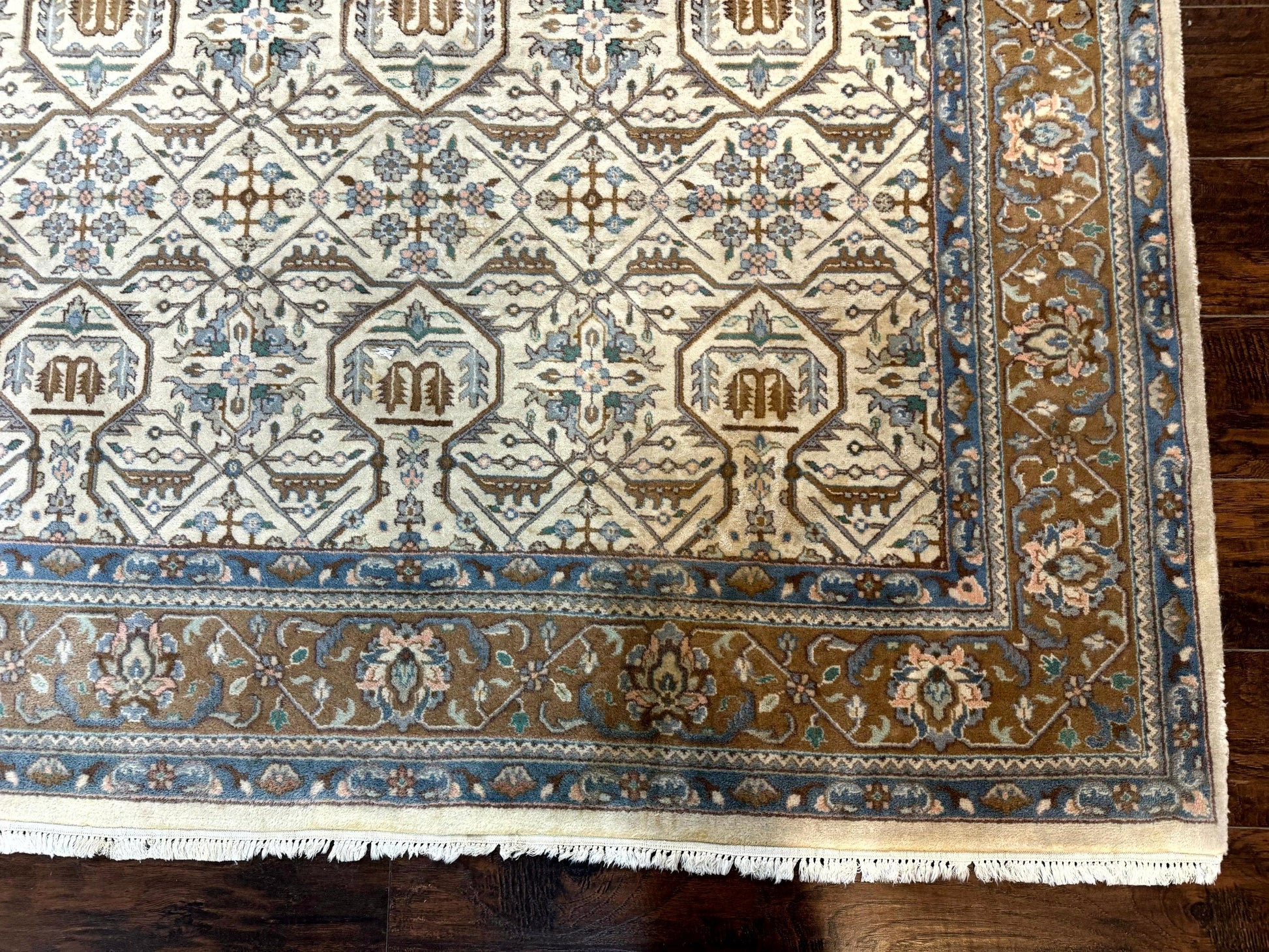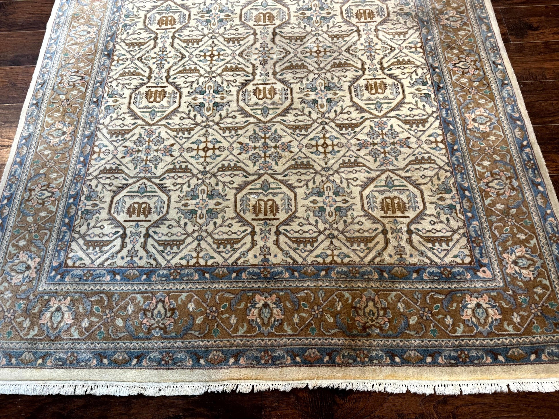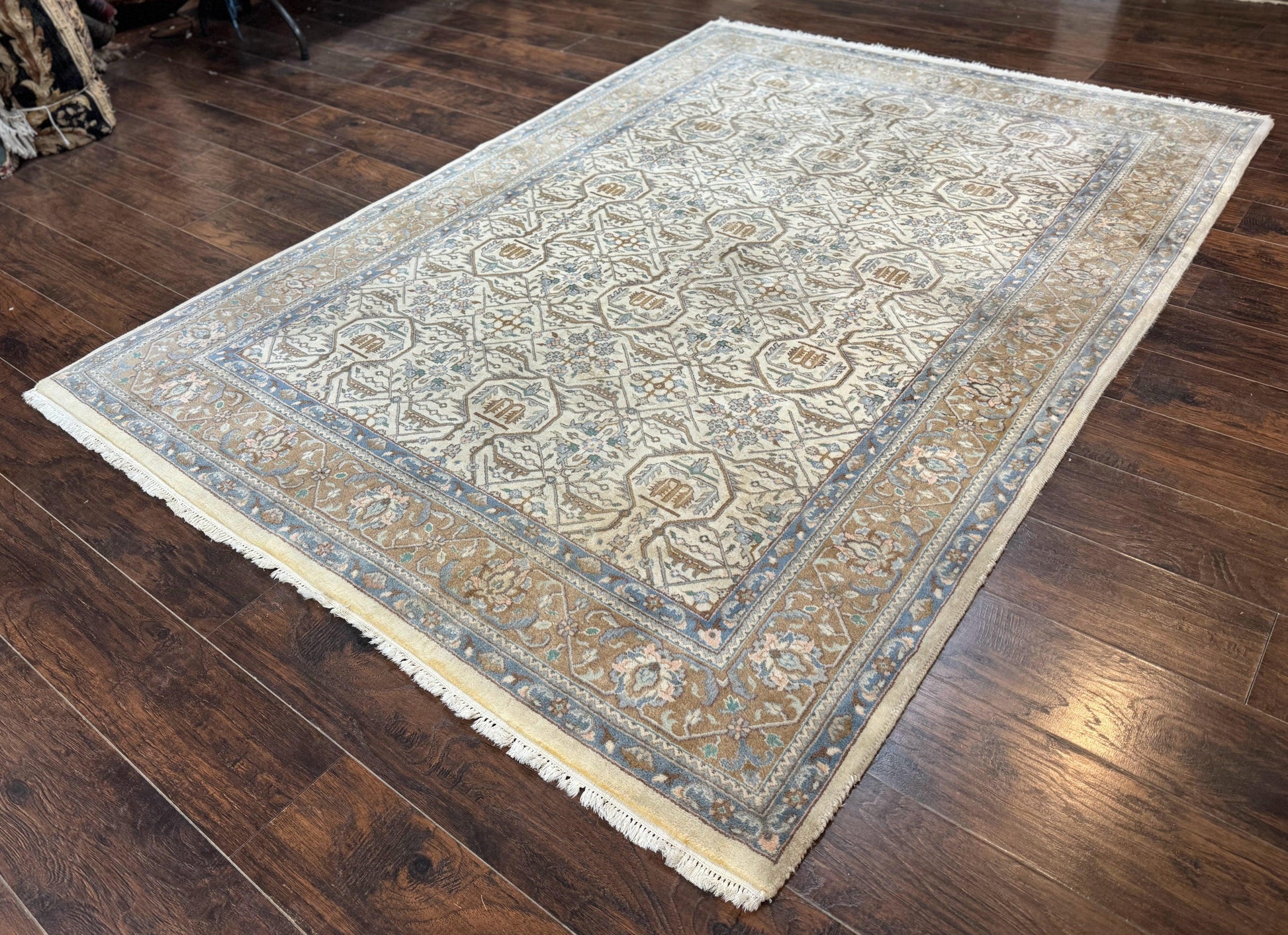 Indo Persian Rug 6x9, Beige, Allover Pattern, Vintage Wool Oriental Carpet