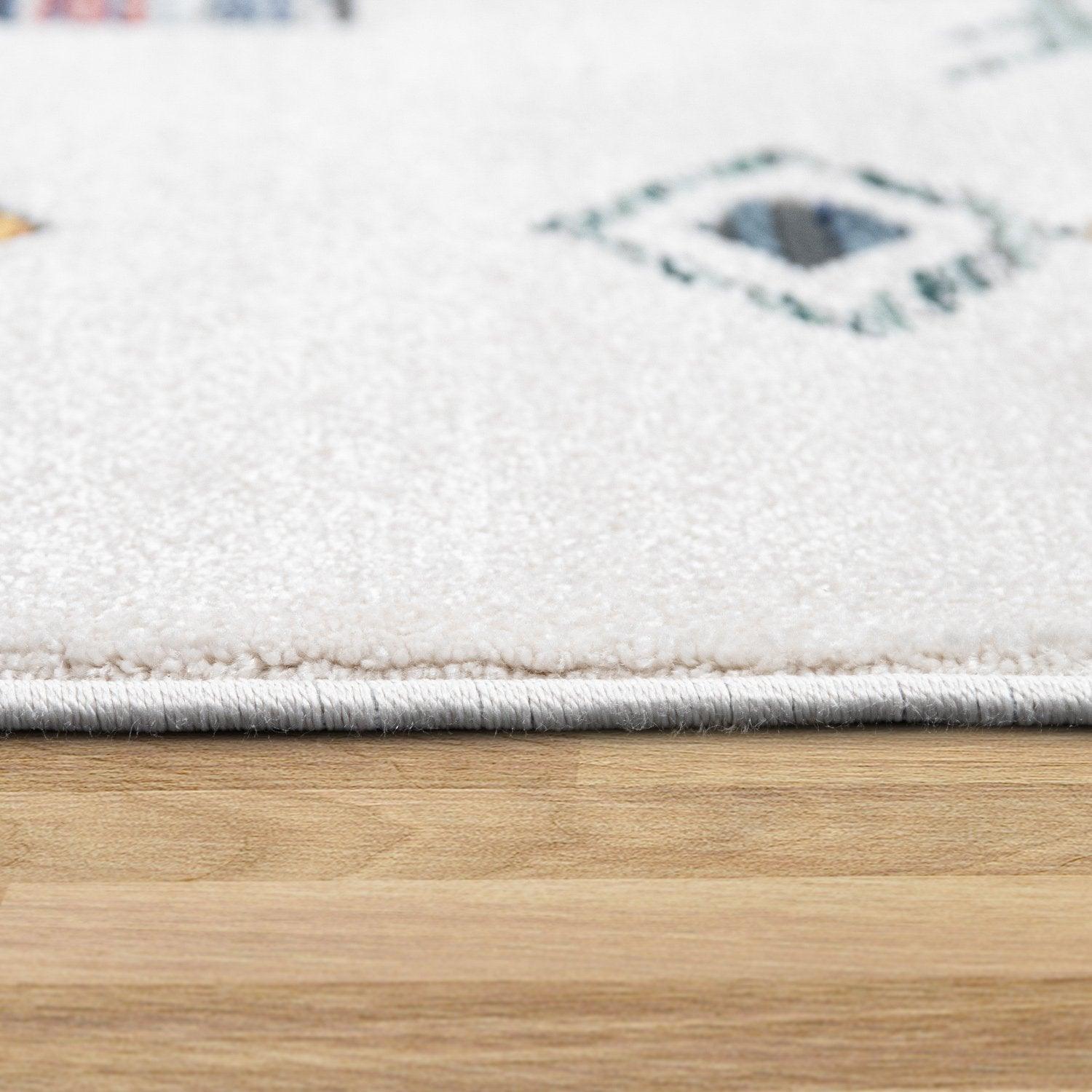 Modern Boho Rug with colorful Diamond Pattern in Cream