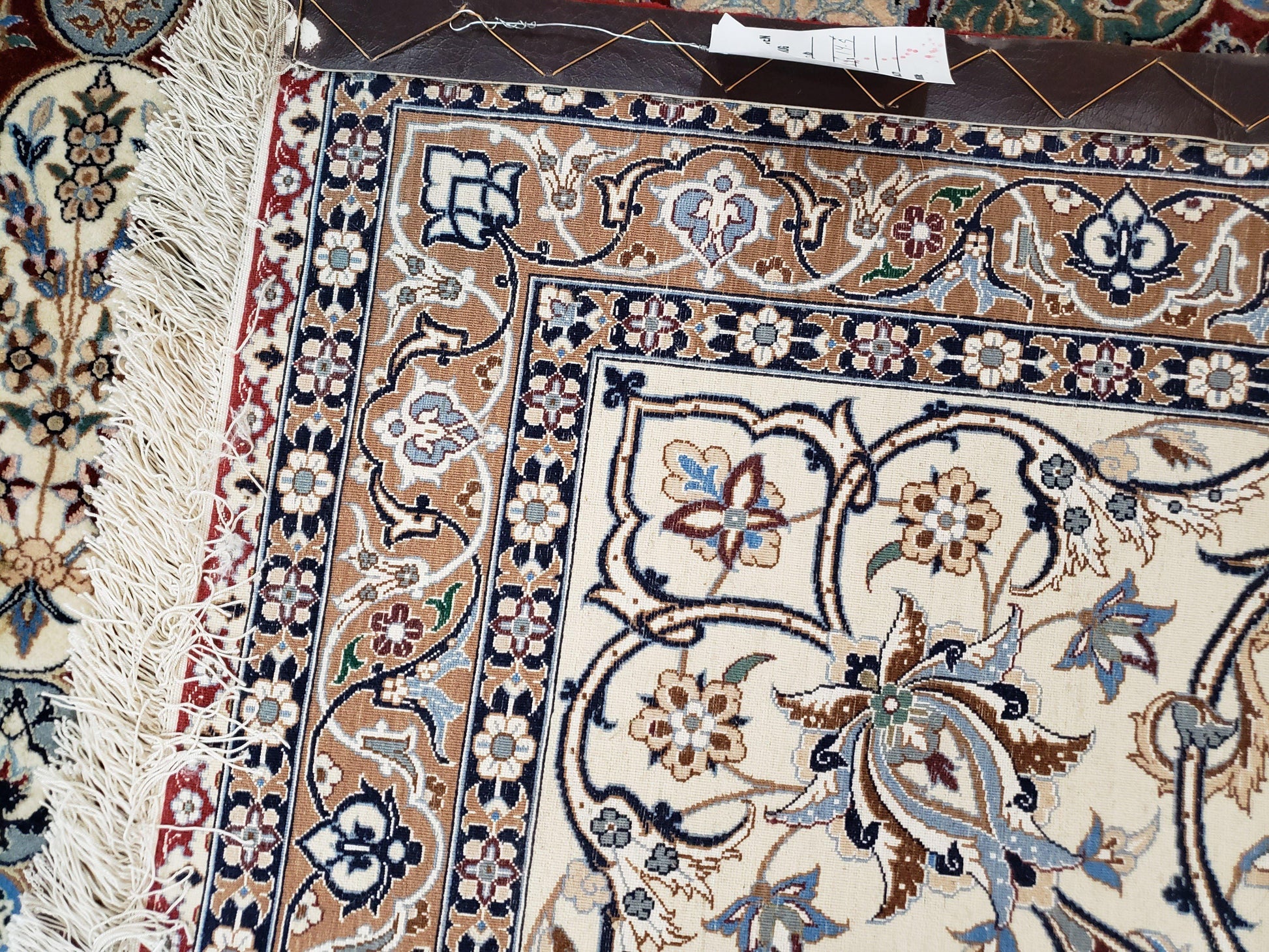 This exceptional hand-knotted Persian Nain rug is a testament to master craftsmanship. Woven from fine-quality kork wool on a silk foundation, this rug exemplifies the luxurious quality that Persian Nain rugs are known for. It also bears the signature of a master weaver, a mark of its authenticity and exceptional artistry.