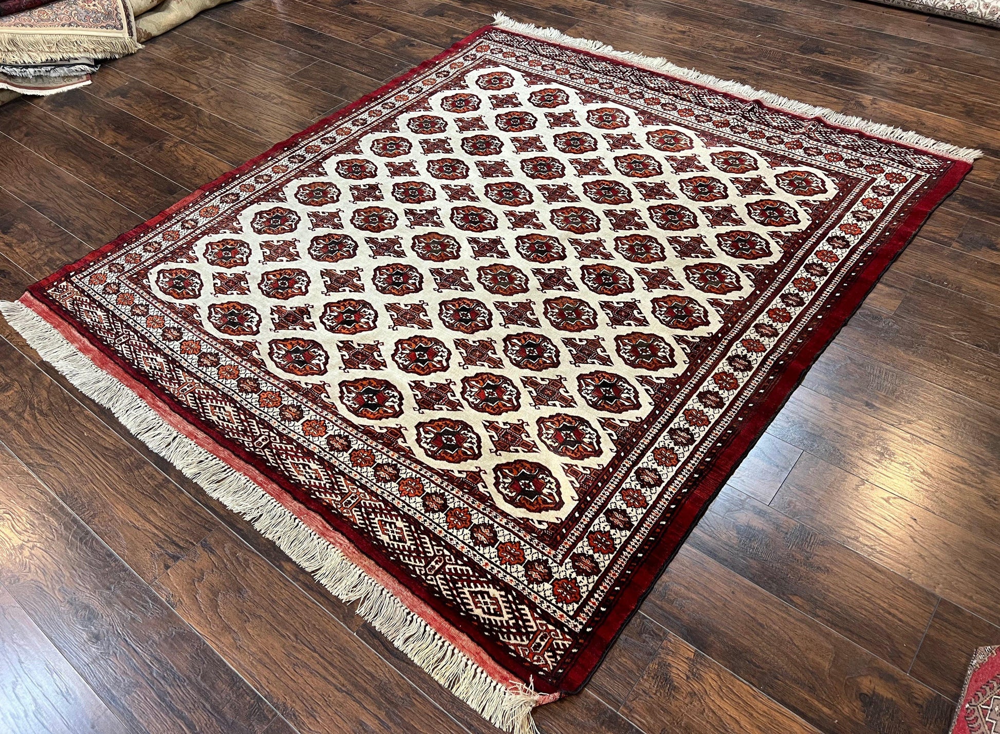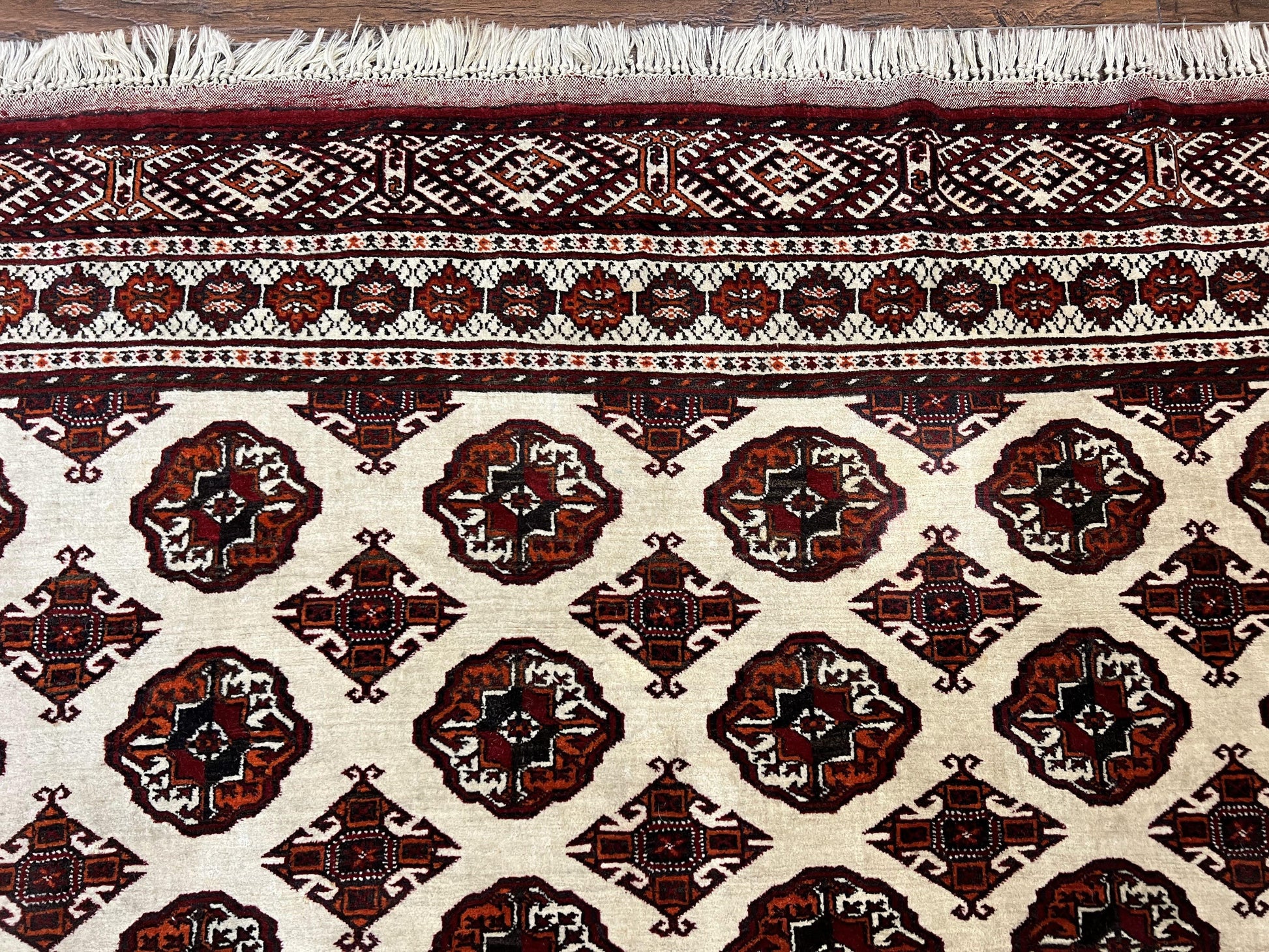 Persian Turkoman Rug 7x8, Almost Square Rare, Hand Knotted, Yamud, Bohemian Rug, Handmade Tribal Rug, Cream Red, Handmade Oriental Carpet