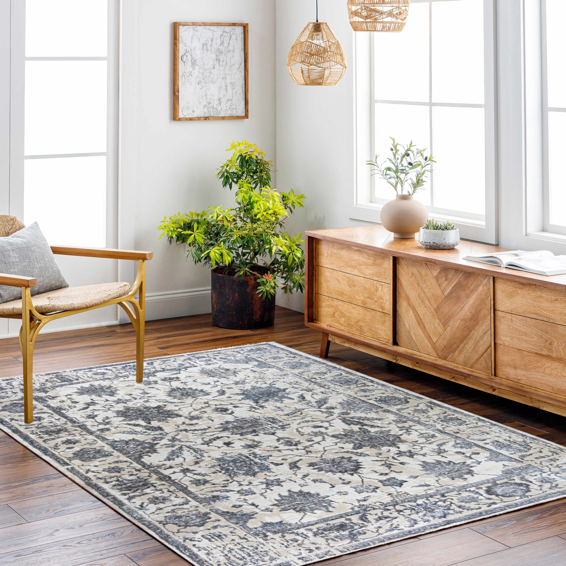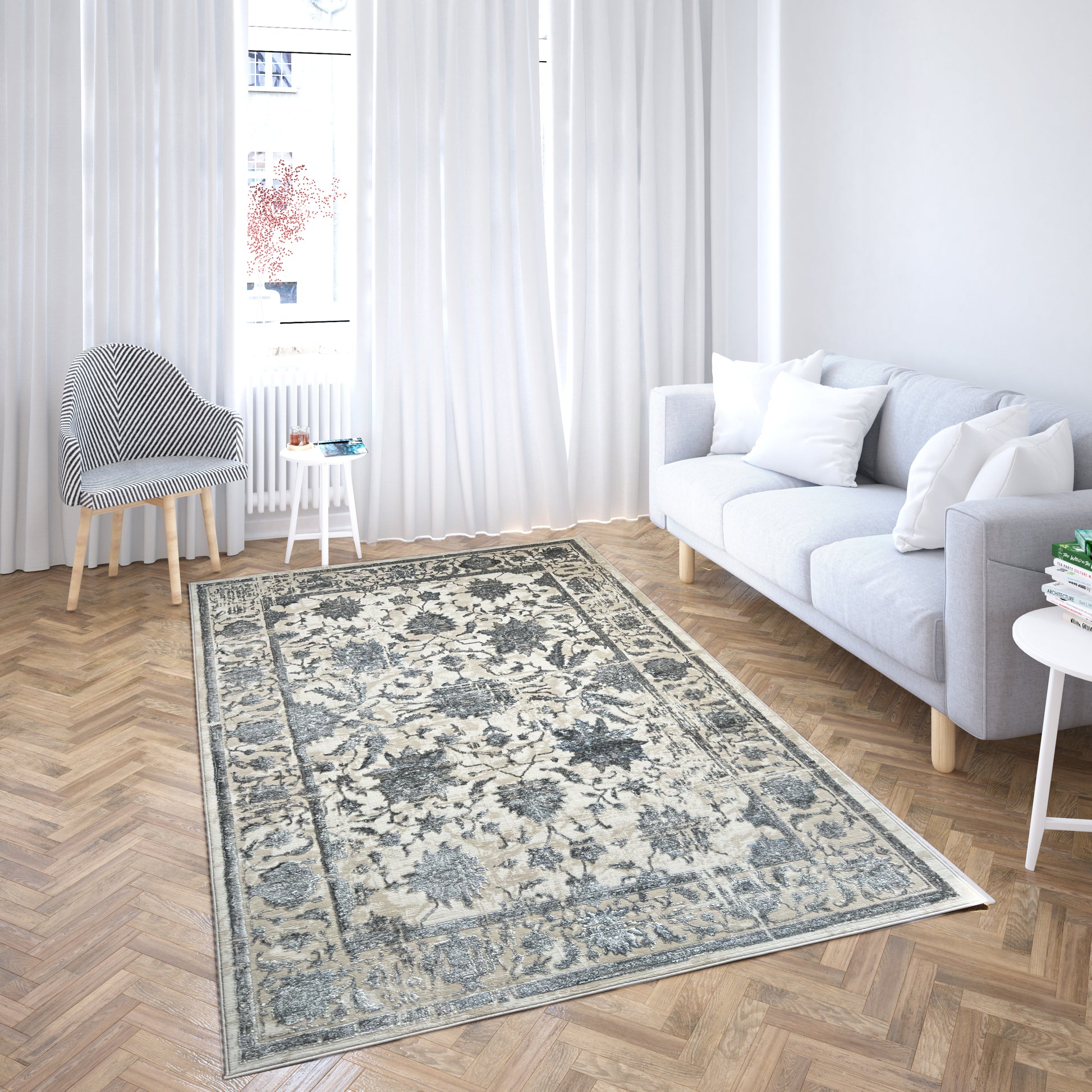 ROY's Home Alfombras de diseño de dos niveles, patrón clásico: hilo marfil brillante, gris y beige