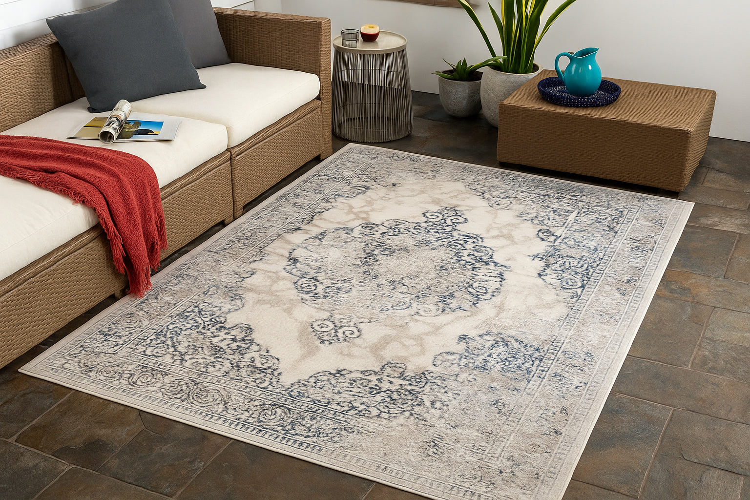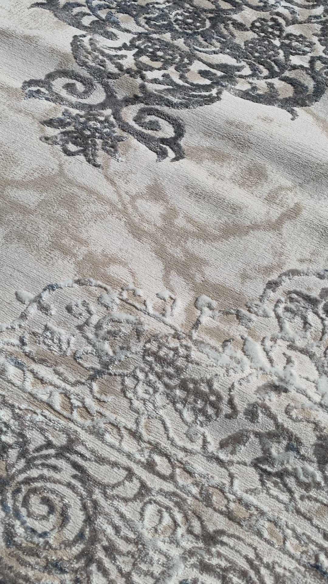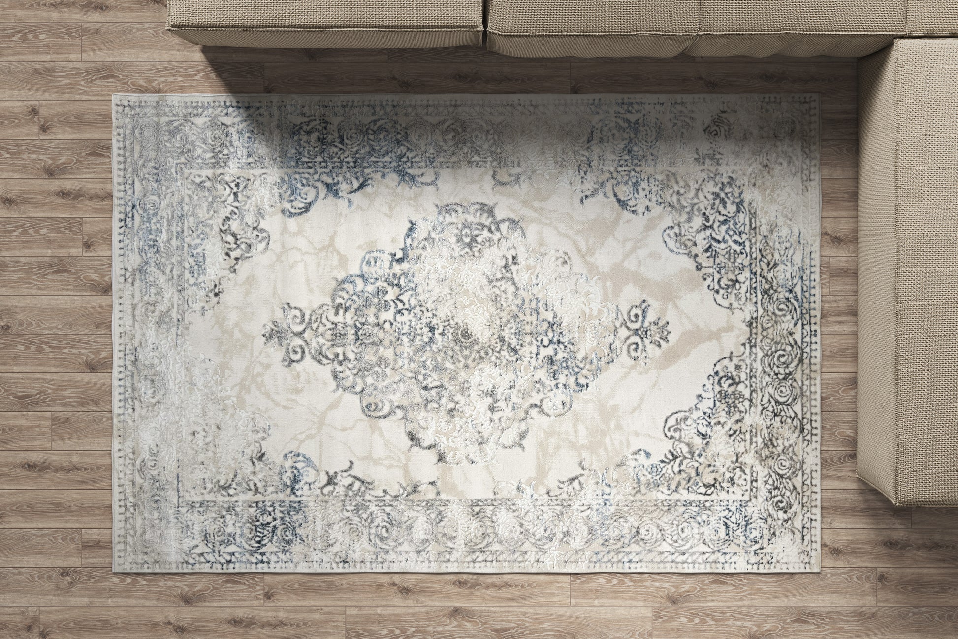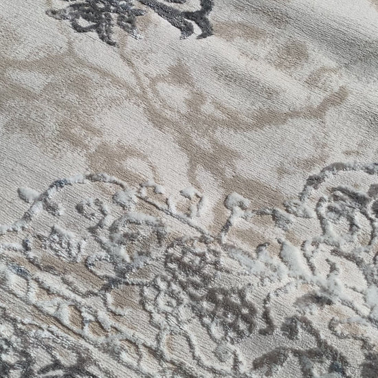 ROY's Home Alfombras de diseño de dos niveles, patrón clásico: hilo marfil brillante, gris y beige