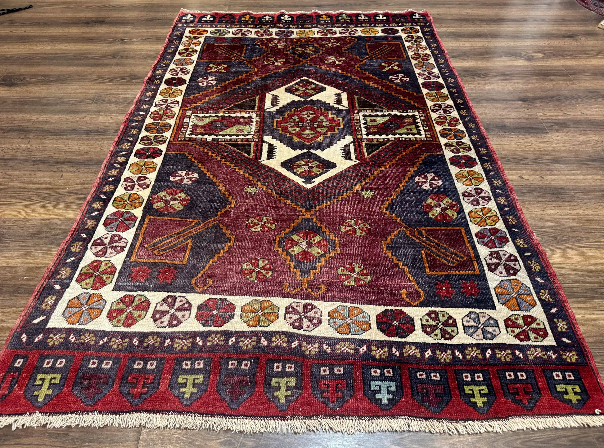 Turkish Kazak Rug 5x7, Geometric