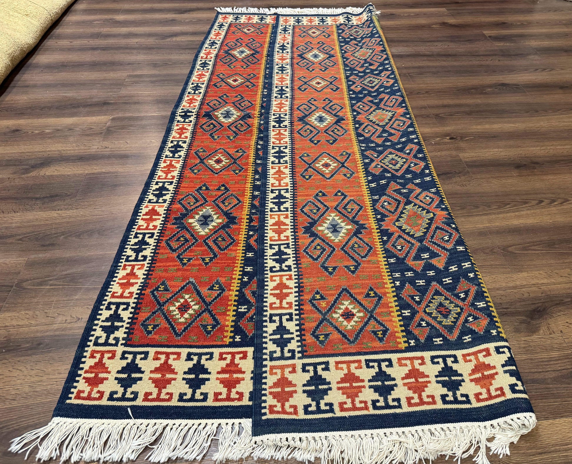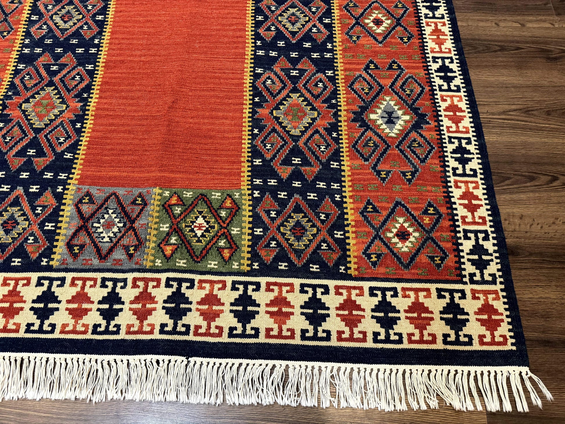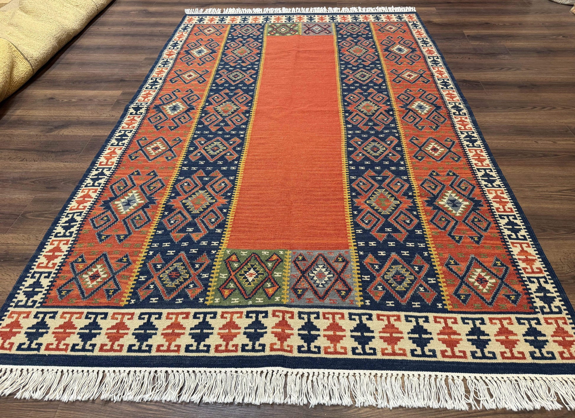 Turkish Kilim Rug 5x8, Flatweave Carpet, Handmade Bohemian Rug, Terracotta and Navy Blue