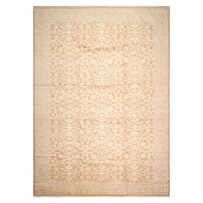 10'x14' Beige Hand Knotted Transitional Antique Reproduction Tibetan 100% Wool Oriental Area Rug