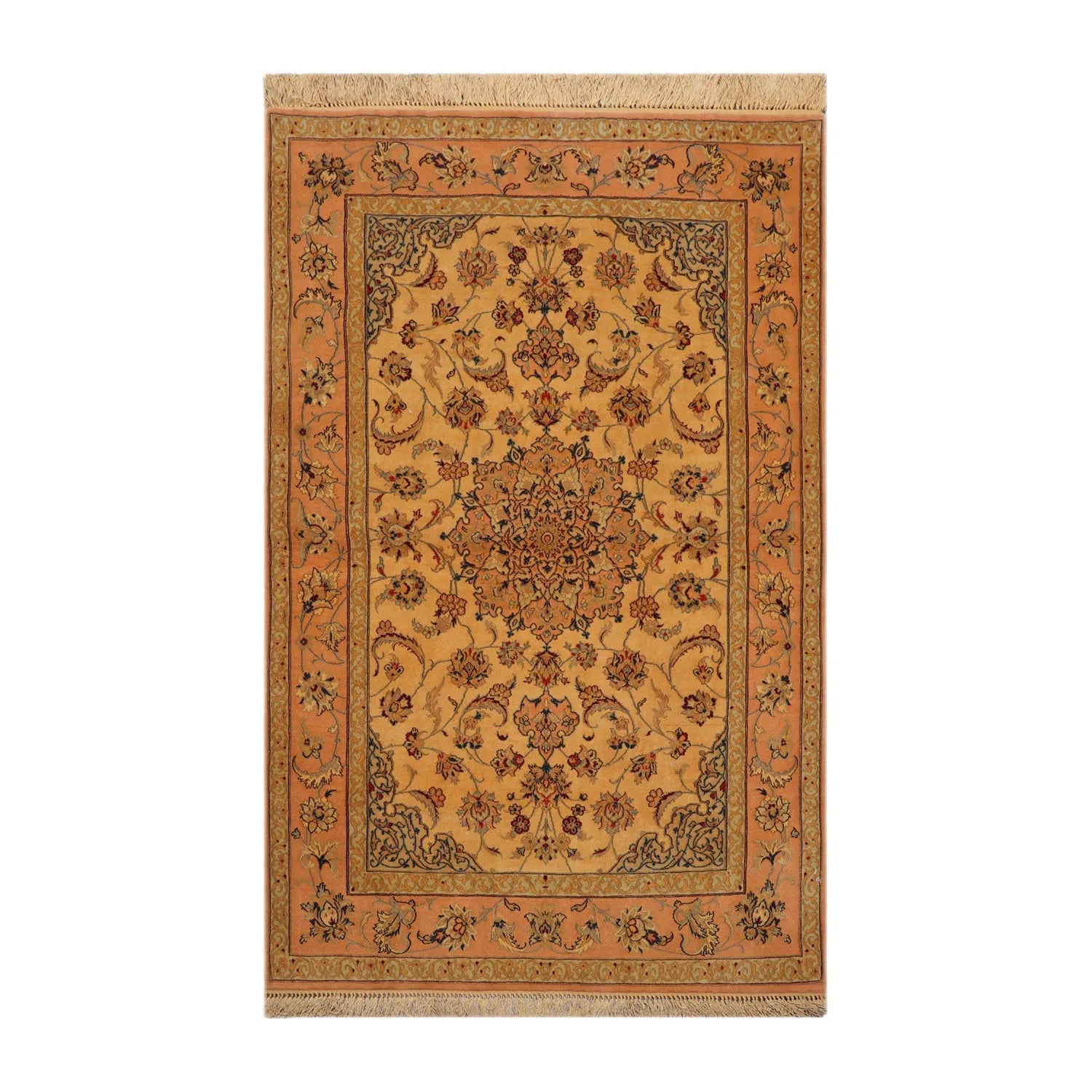 3' 1''x5' 2'' Hand Knotted 100% Wool Traditional Isfahan with 400 KPSI Oriental Area Rug Gold, Peach Color