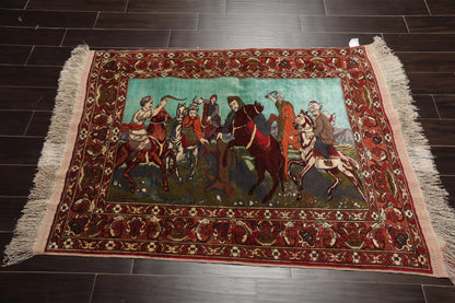 3' 7''x5' Hand Knotted Persian 100% Wool Traditional 300 KPSI Oriental Area Rug Turquoise,Green Color