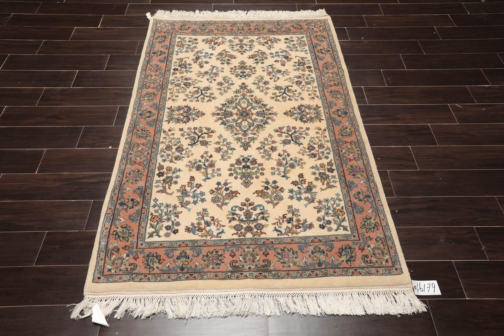 4'1" x 6' Hand Knotted Kerman Wool Traditional Oriental Area Rug Ivory