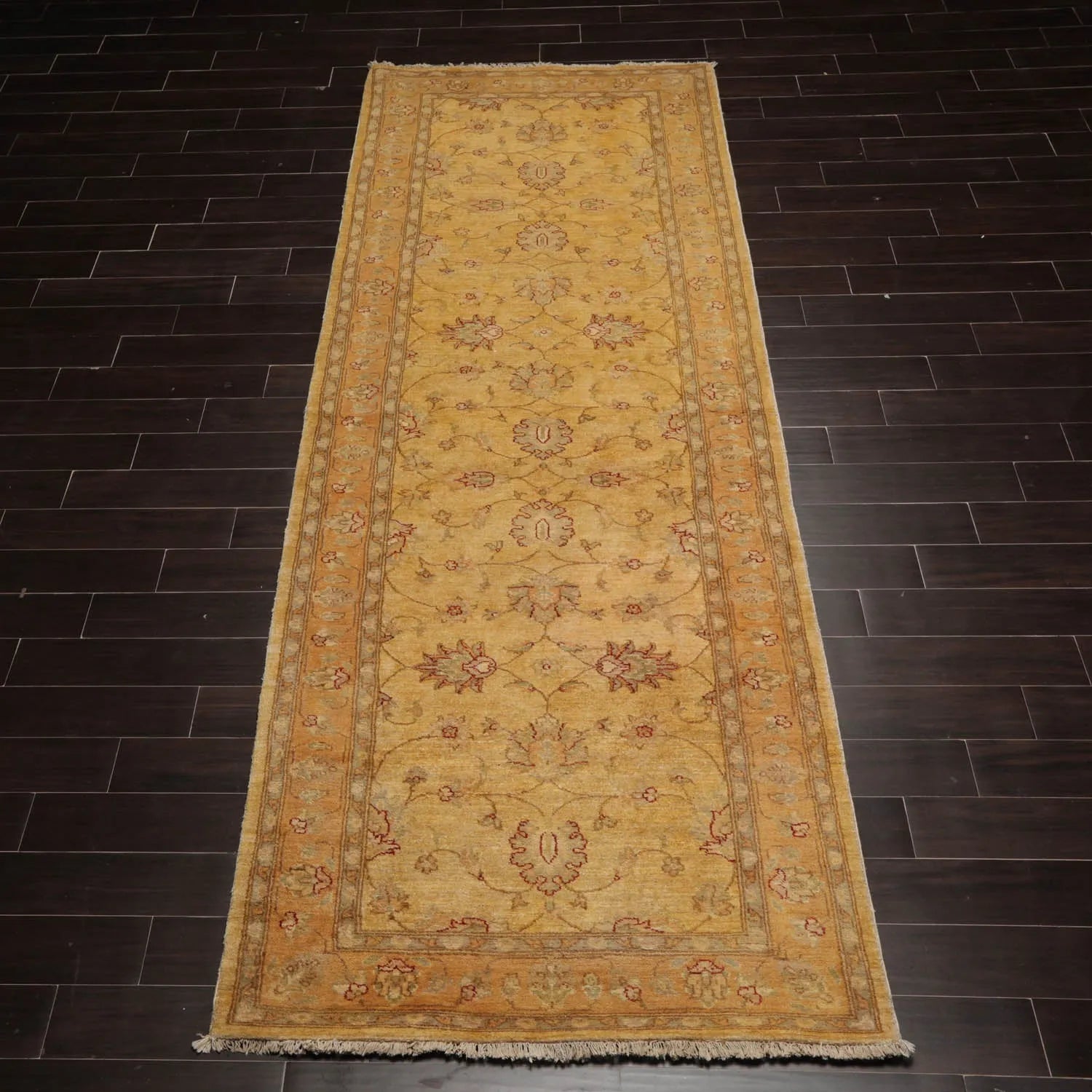 4'7''x12'5'' Runner Beige, Gold Hand Knotted Persian 100% Wool Chobi Peshawar Traditional Oriental Area Rug