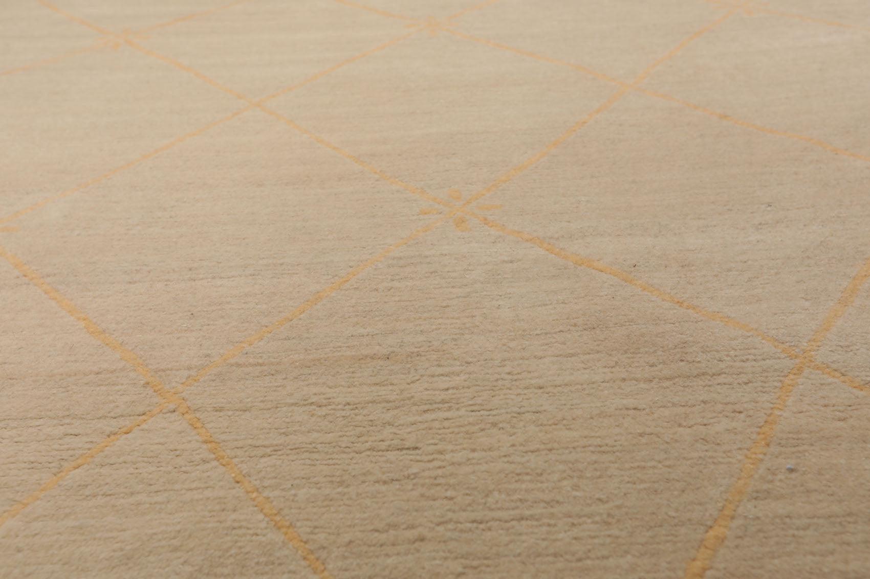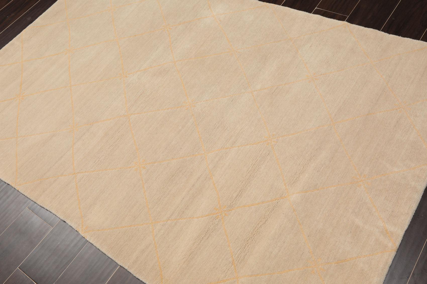 Story Behind the Art For centuries Tibetans have used rugs for decorative and functional purposes, drawing upon geometric patterns, auspicious symbols, real and mythical animals, and natural imagery to create beautiful, colorful designs. But it was only after 1959 with the Chinese invasion of Tibet and the growth of Tibetan diaspora in Nepal and Tibet that Tibetan rug weaving underwent a crucial commercial revival. In the 1970s, Tibetan rugs rose to prominence and Nepalese artisans, drafted in to keep up with the rising demand, became the mainstay of the Tibetan rug weaving traditions. While either Turkish knot or the Persian knot (Senneh knot) is used to create the pile or depth of a rug in most of Asia, the Tibetan rug utilizes a slit-loop technique called the Tibetan knot. Here rugs are woven by wrapping a continues length of yarn over a rod laid across the warps stretched on the loom. When the rod has been wrapped for its entire length, a knife is slid along the rod, cutting the wrapped yarn into two rows of pile tufts. The resultant pile is a wonderful mix of depth, texture and richness. Traditional Tibetan rug motifs generally reflect the importance of Buddhist religion in Tibetan art and culture. Many design elements of Chinese origin like the phoenix, dragon, and lotus symbols alongside motifs from Chinese decorative tradition have also been assimilated in the rug repertoire of this region. In modern times, designs featured in Tibetan, Nepalese rugs (those woven by Tibetan refugees in Nepal) and Indo-Tibetans (woven in India) range from Westernized adaptations of traditional Tibetan motifs (such as branching floral designs and snow lions) to a large mixture of foreign and modern free-form patterns.