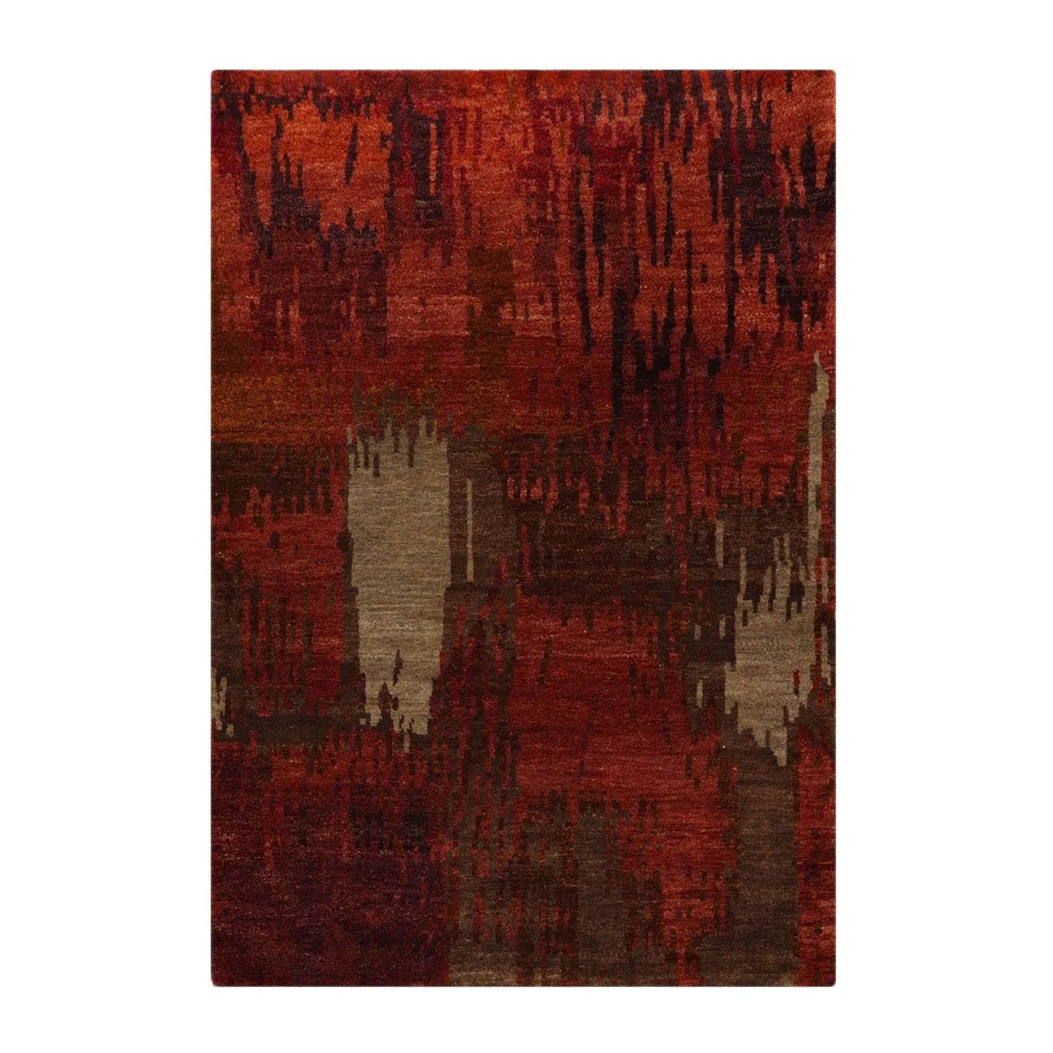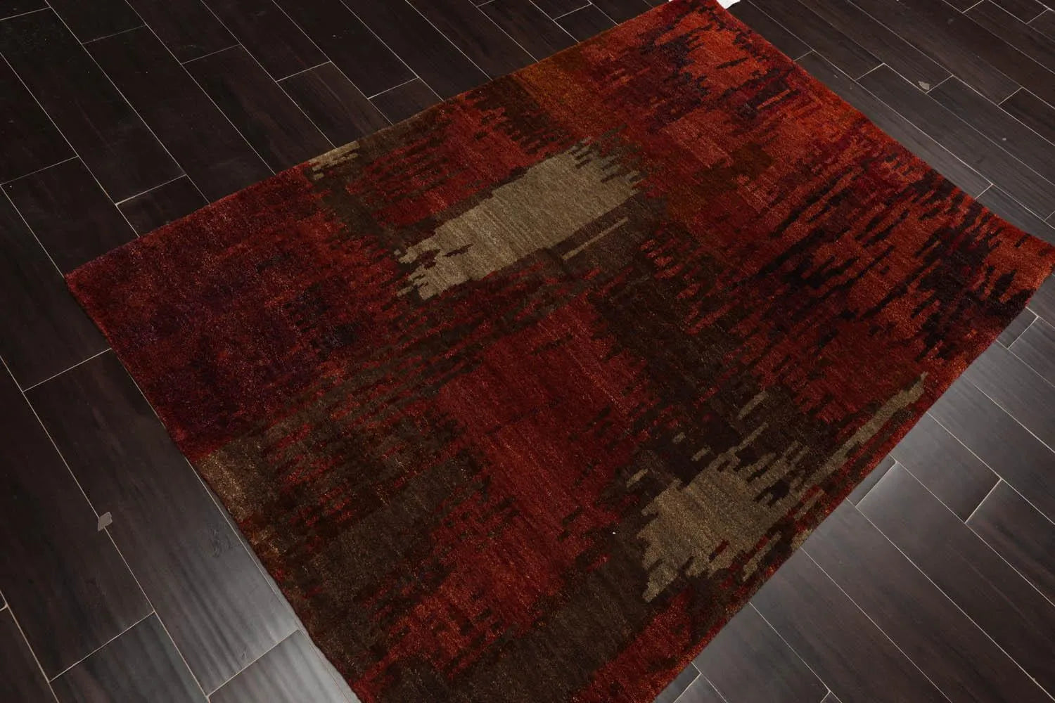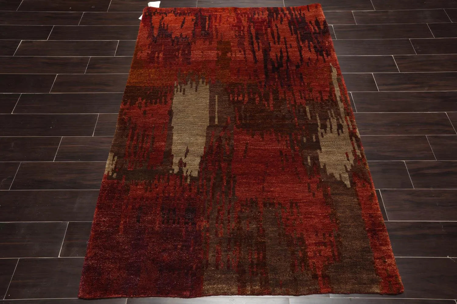 4'x5'10'' Hand Knotted Tibetan 100% Wool Abstract Modern & Contemporary Oriental Area Rug Rust, Olive Color