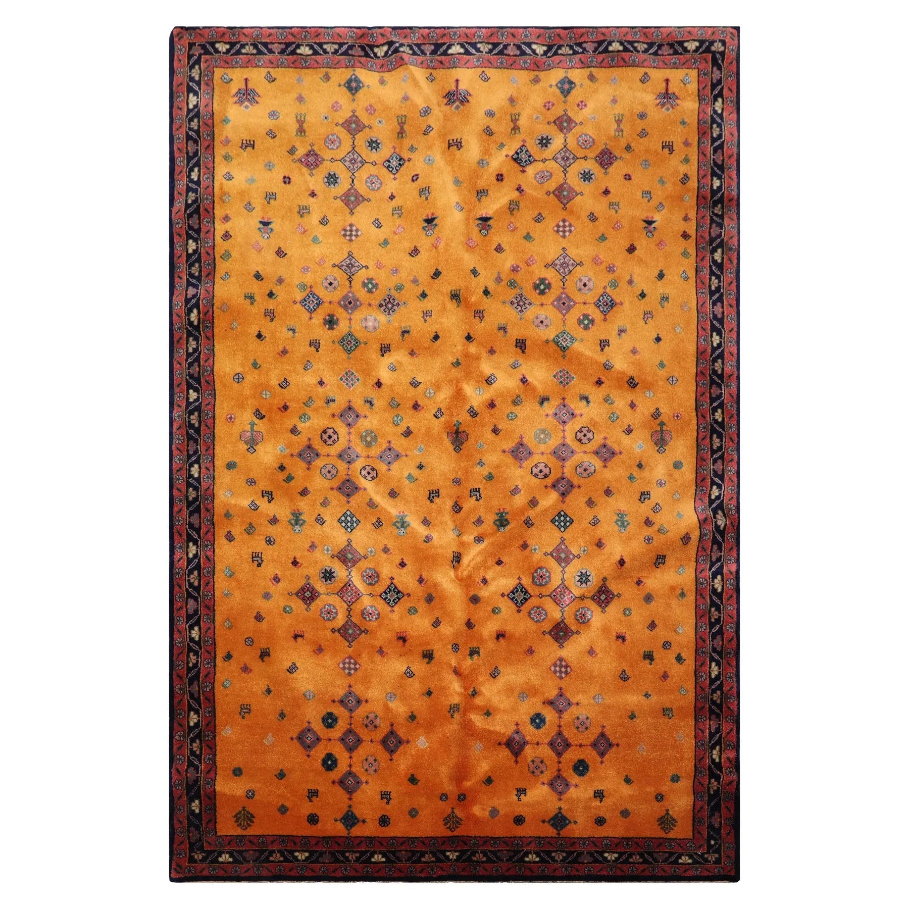 4'x6' Gold Hand Knotted Geometric Traditional 250 KPSI Persian Wool Oriental Area Rug