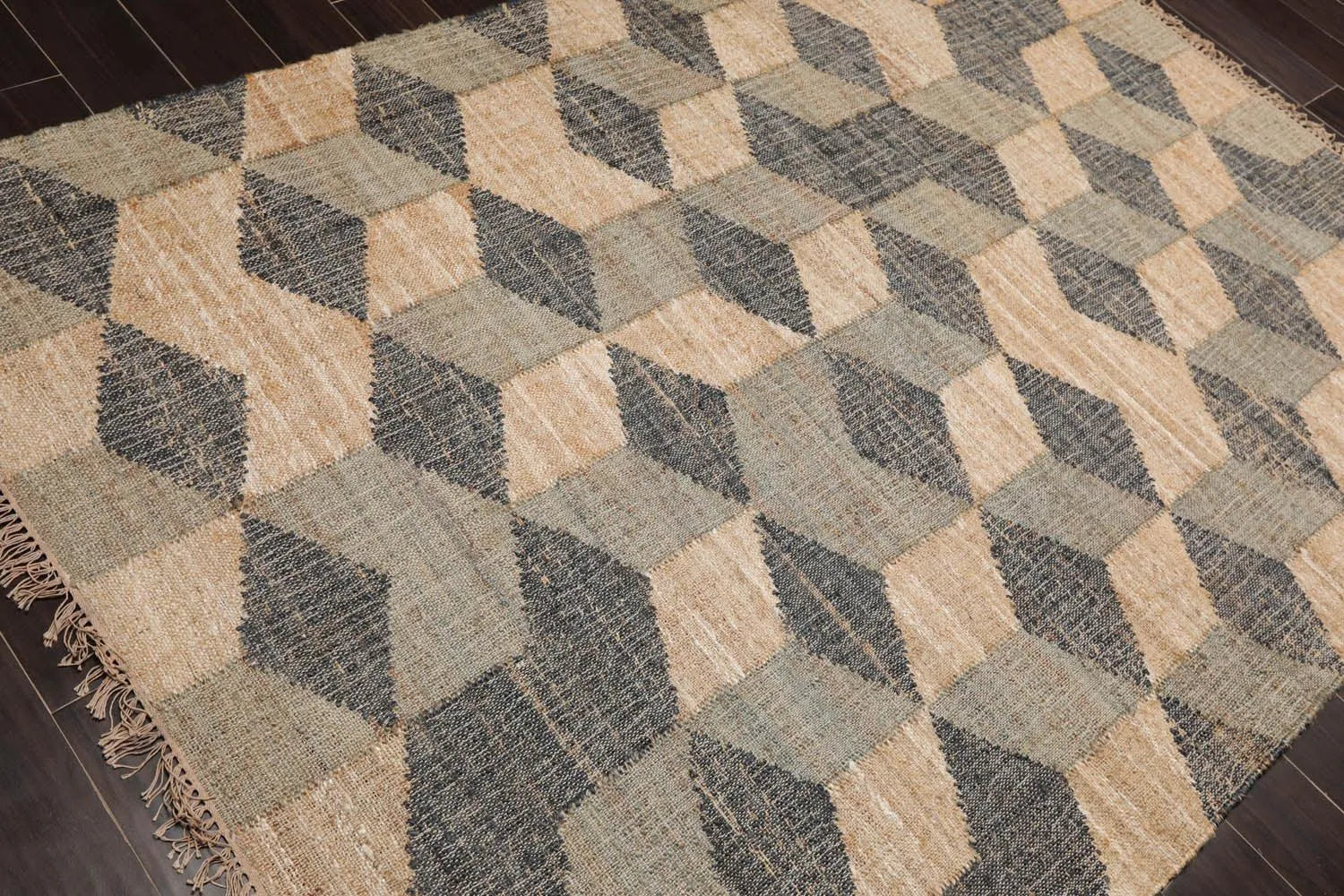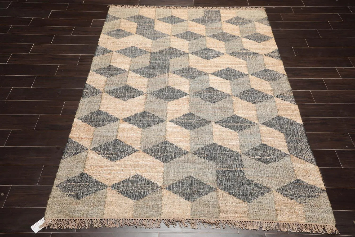 5’6”x7’9”Hand Woven Natural Fiber Jute Modern Graphic Flatweave Kilim Area Rug