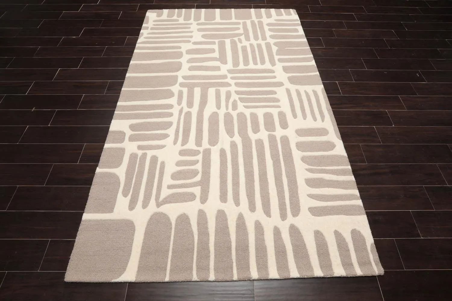 5' x8'' Hand Tufted Hand Made 100% Wool Designer Modern & Contemporary Oriental Area Rug Taupe,Ivory Color