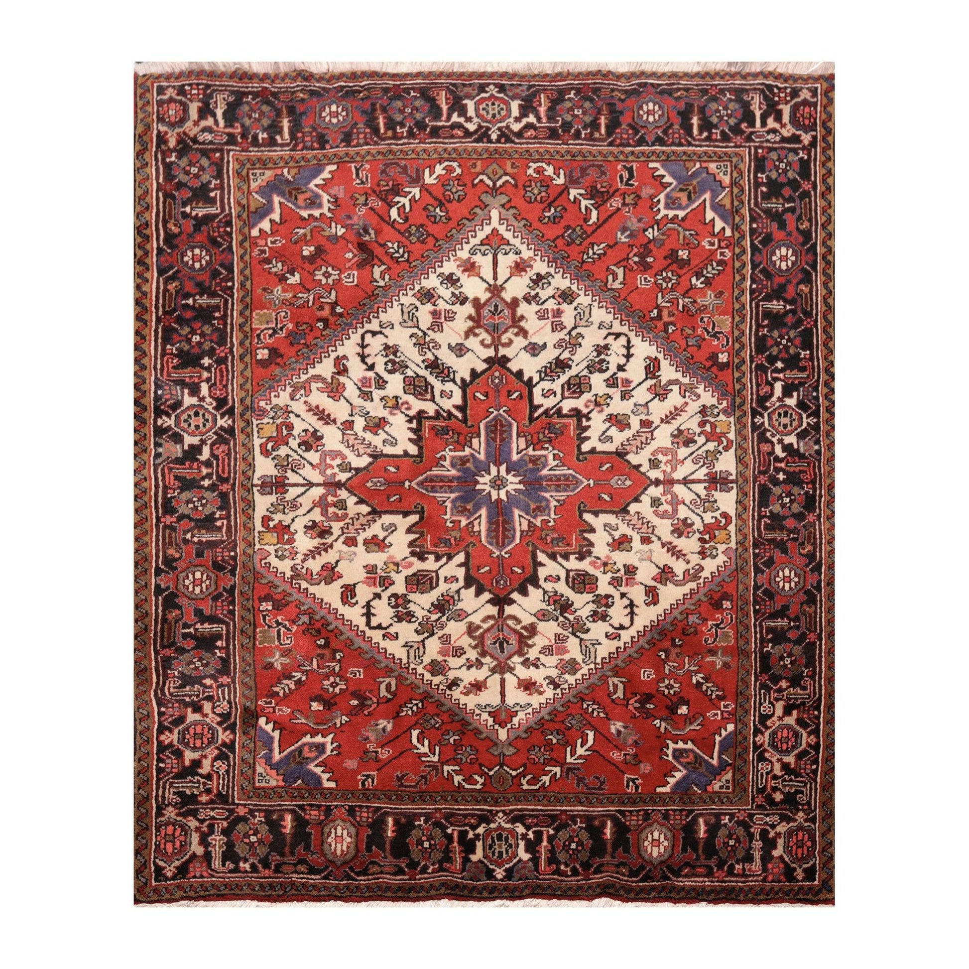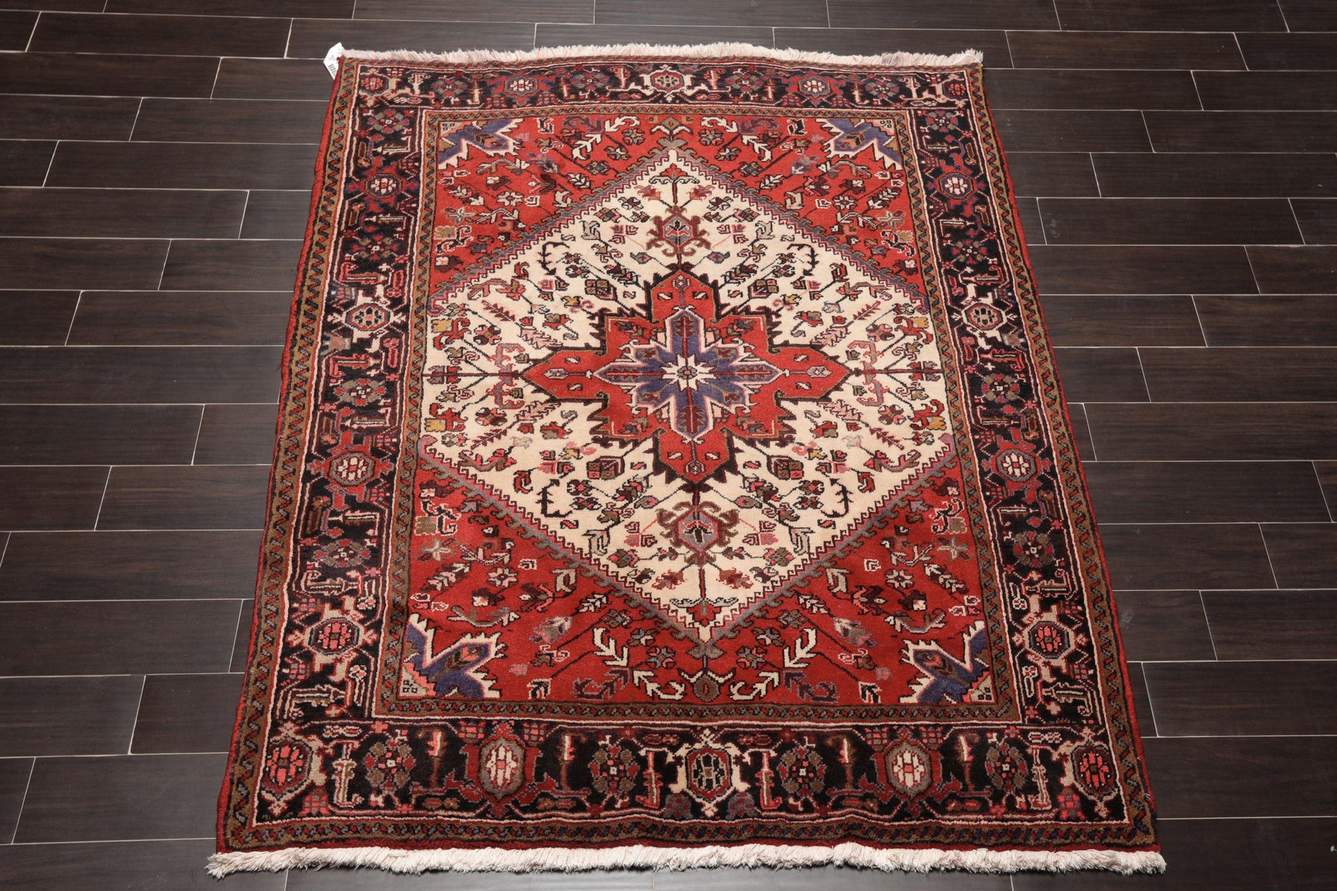 5'3" x 6'4" Hand Knotted Wool Herizz Vegetable dyes Oriental Area Rug Ivory