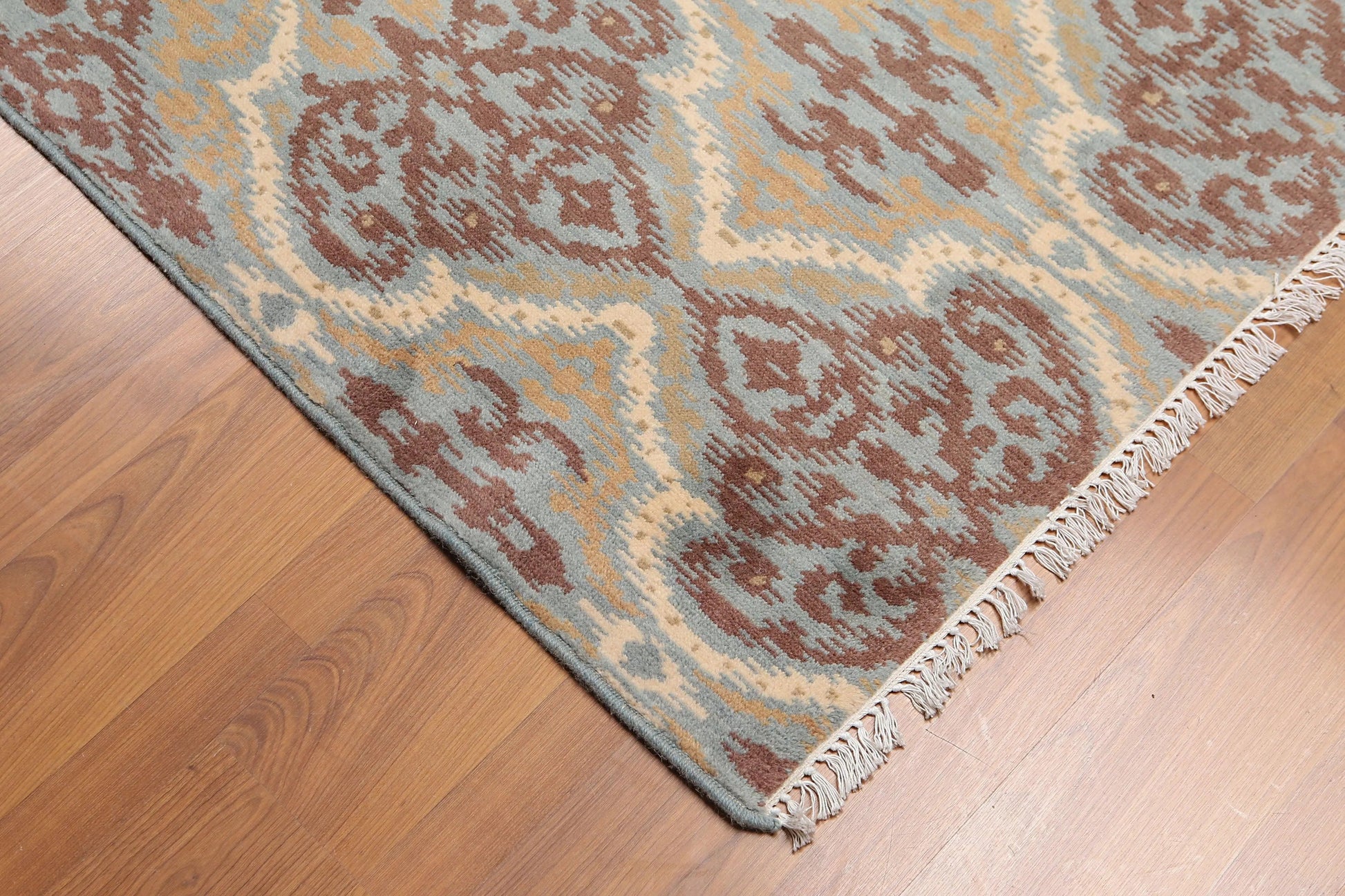 6' x 9' Hand Knotted IKAT Design 100% Wool Area rug Aqua