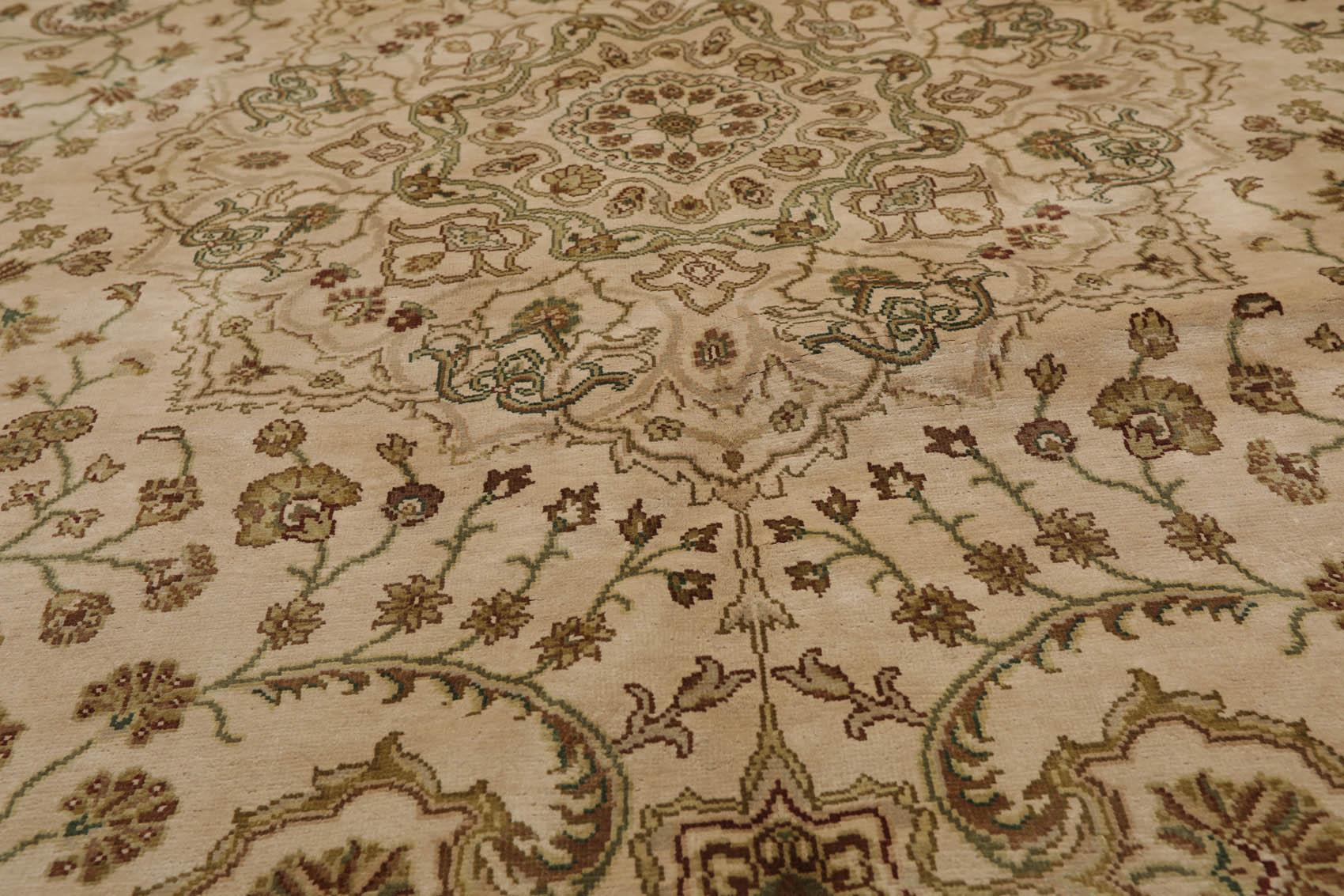 This is a beautiful Beige, Brown, Multi Color Hand Knotted, Oriental 100% Silk Rug. Its elegant style is easy to decorate with and perfect for living room, dining room, bedroom or anywhere in the residence and office.