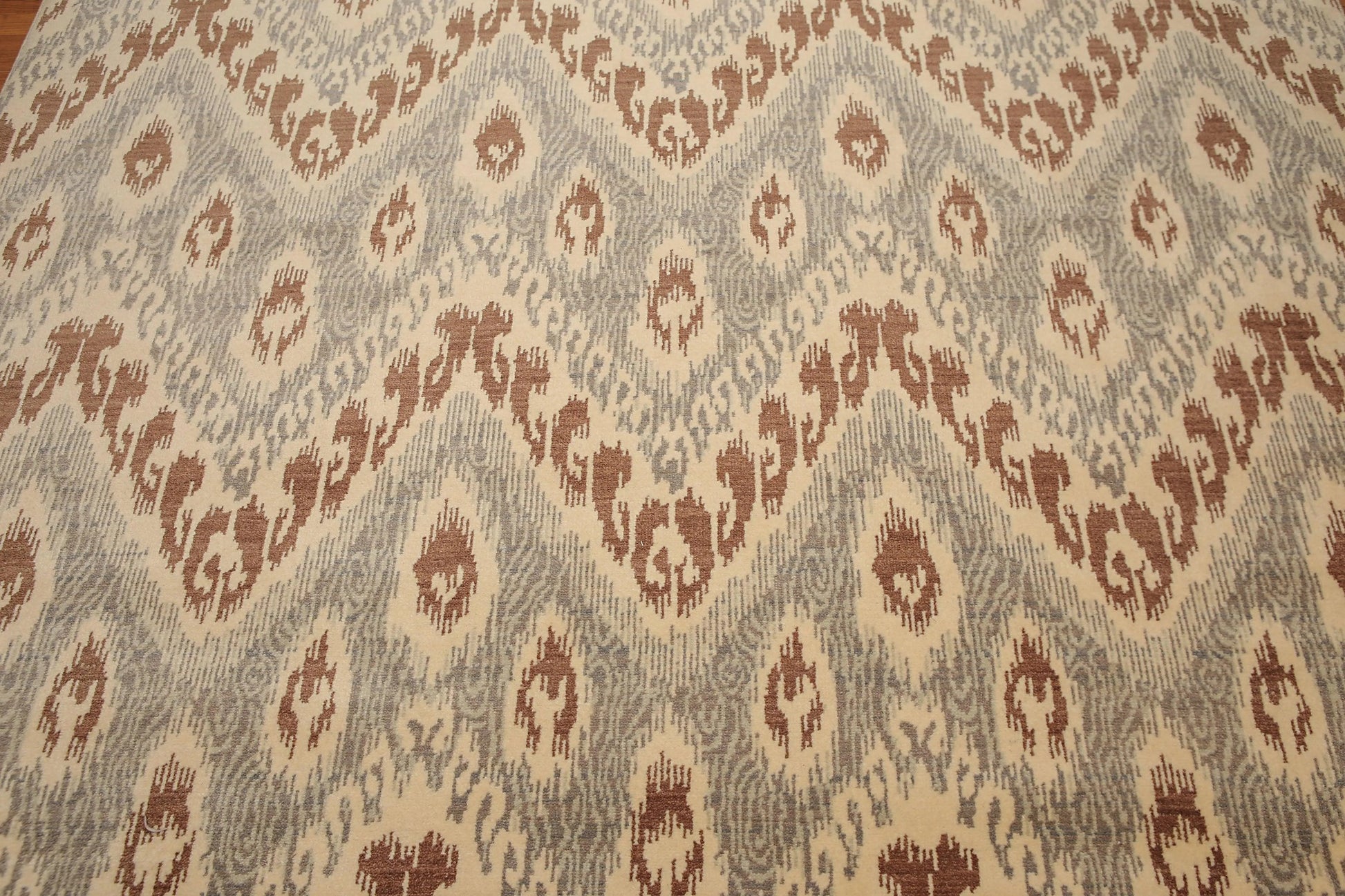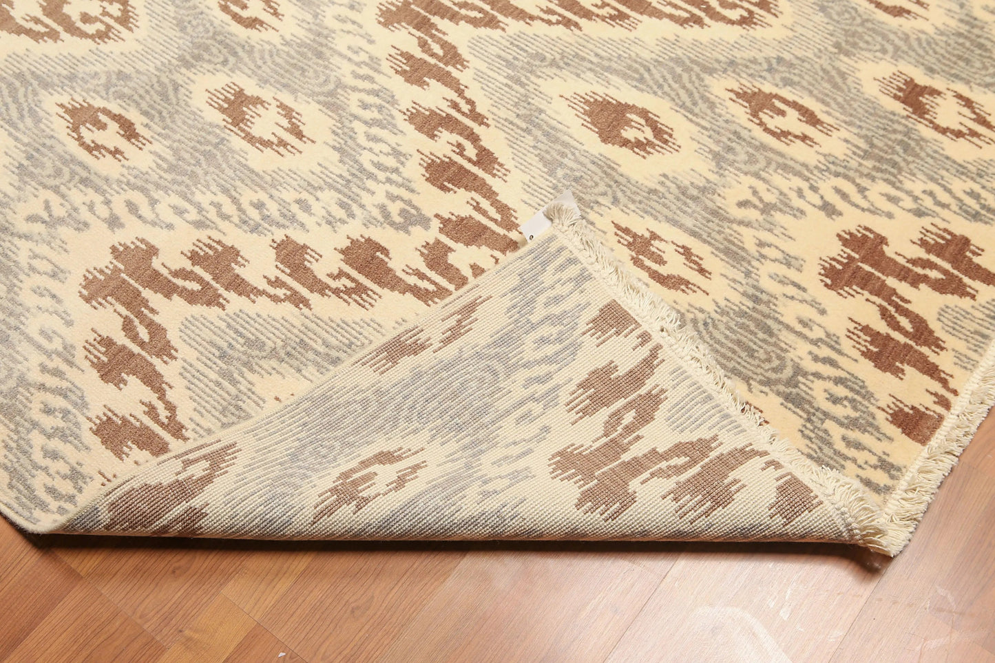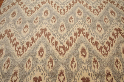 8' x 10' Modern Hand Knotted Ikat Wool Full Pile Oriental Area Rug Ivory