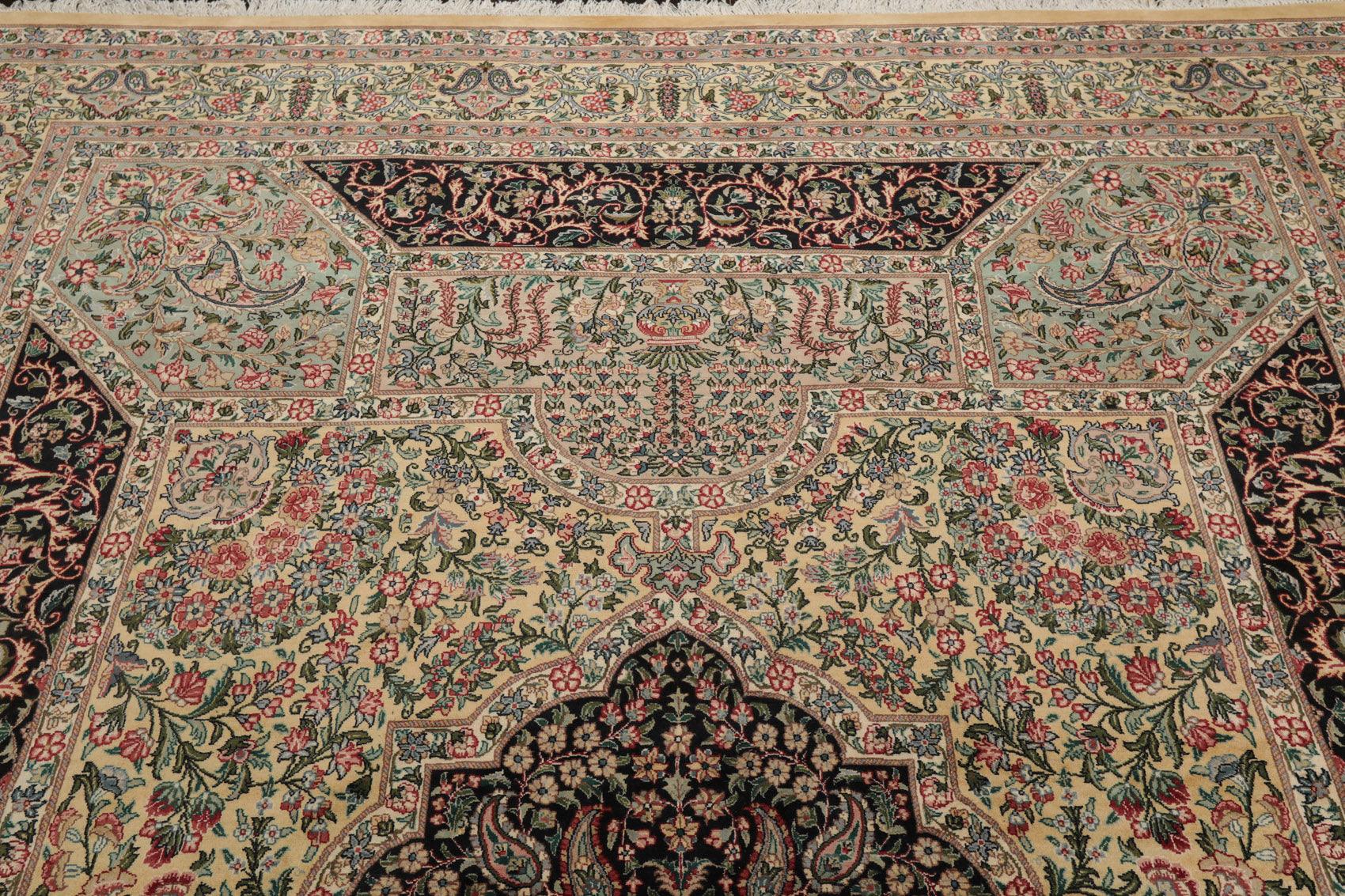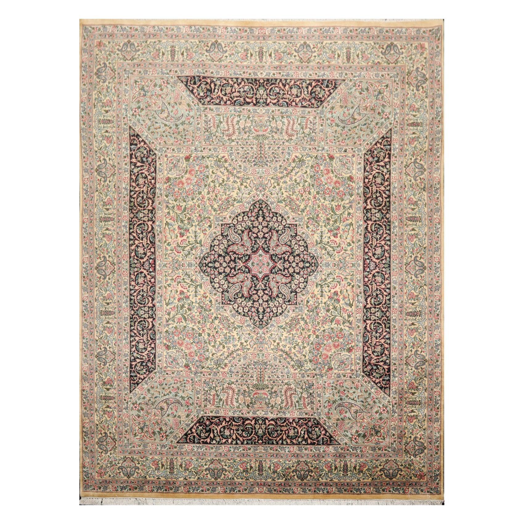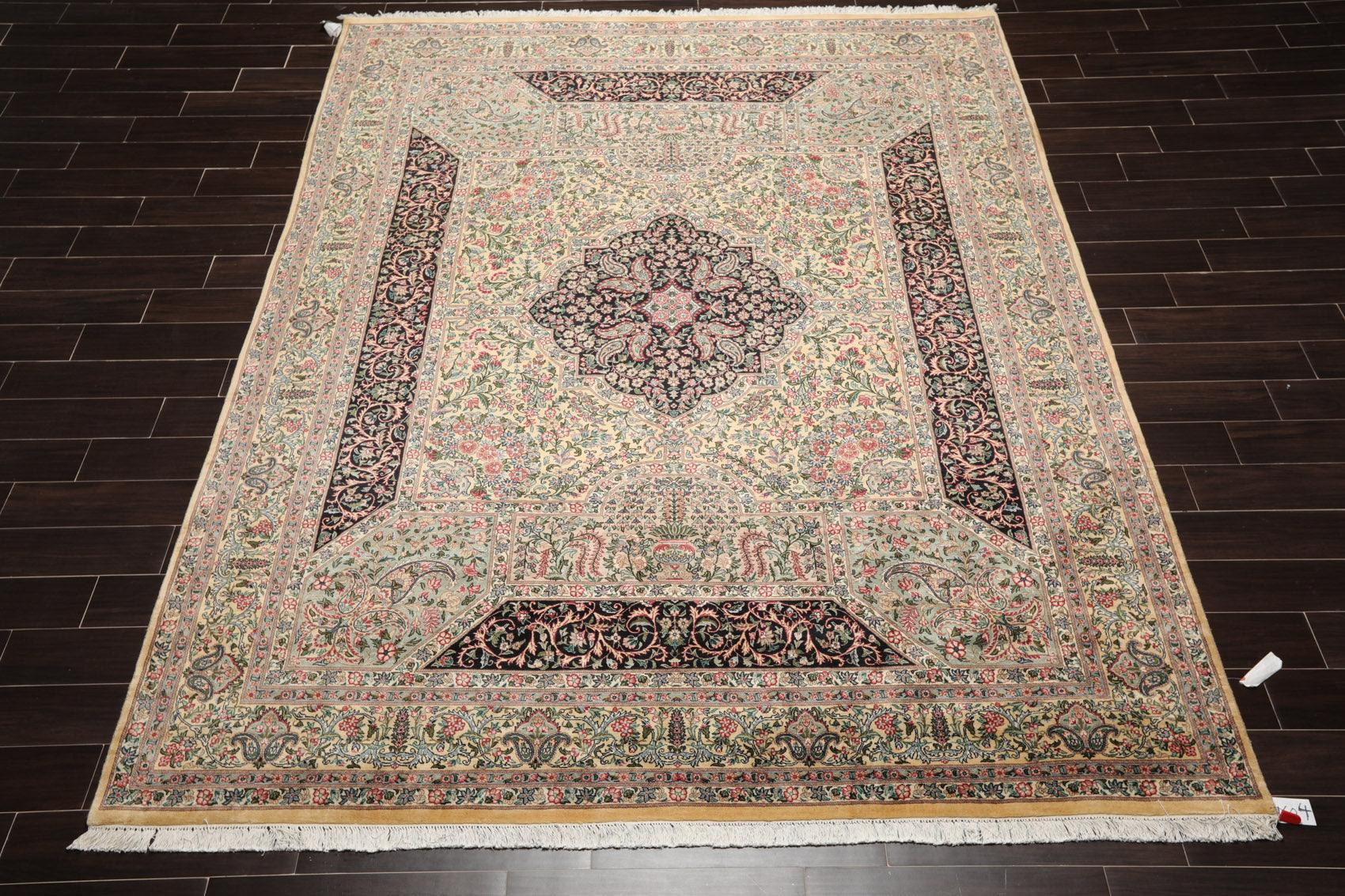 8'1"x 10'3" Hand Knotted Wool PakPersian 300 KPSI Area Rug Ivory Black Aqua