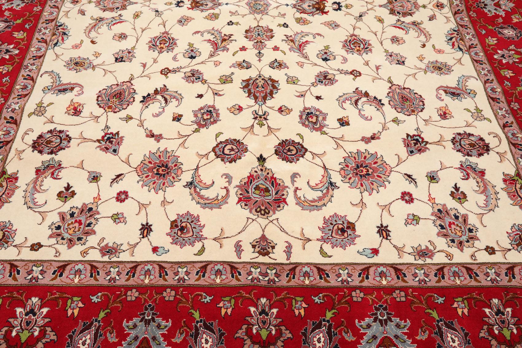 8'2''x 10'4" Hand Knotted 100% Wool 16/18 Pakpersian 300 KPSI Area Rug Ivory Red
