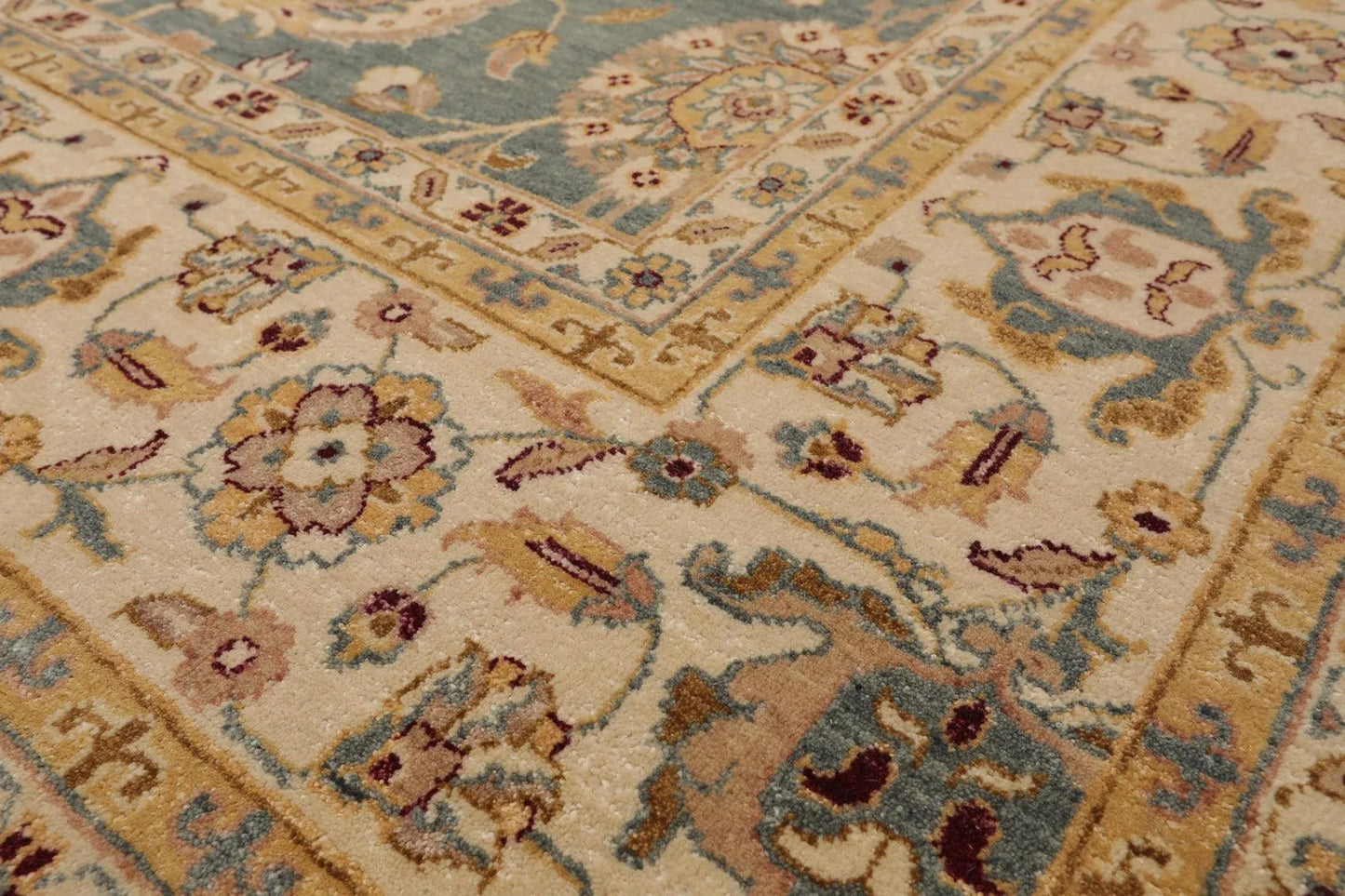 Story Behind the Art It was during the Mughal rule in India that the rug industry reached its zenith and came on its own as an art form. With Emperor Akbar setting up rug weaving centers in Agra, Delhi and Lahore during the late 16th century, the rugs produced designs that followed the Persian style. However, by the 17th century, the Indian rugs began to grow their own lexical and semantic iconography and differed significantly from the Persian prototypes. Tight weaving, silk like wool, bright, deep color range and realistic motifs became the defining feature of Indian rugs. It is this combination of exquisitely detailed and painstaking craftsmanship and masterful interplay of design elements that has earned Indian rugs age-defying allure and patronship defying borders and time. Today the Agra rugs combine the grandeur and grace of the well-known Persian antique rug designs with their own original themes. The Agra rug is famous for its use of floral tendrils, angular vines and stars and favors all-over angular designs with scrolling leaves, vines and large finely detailed flowers with bold floral borders.