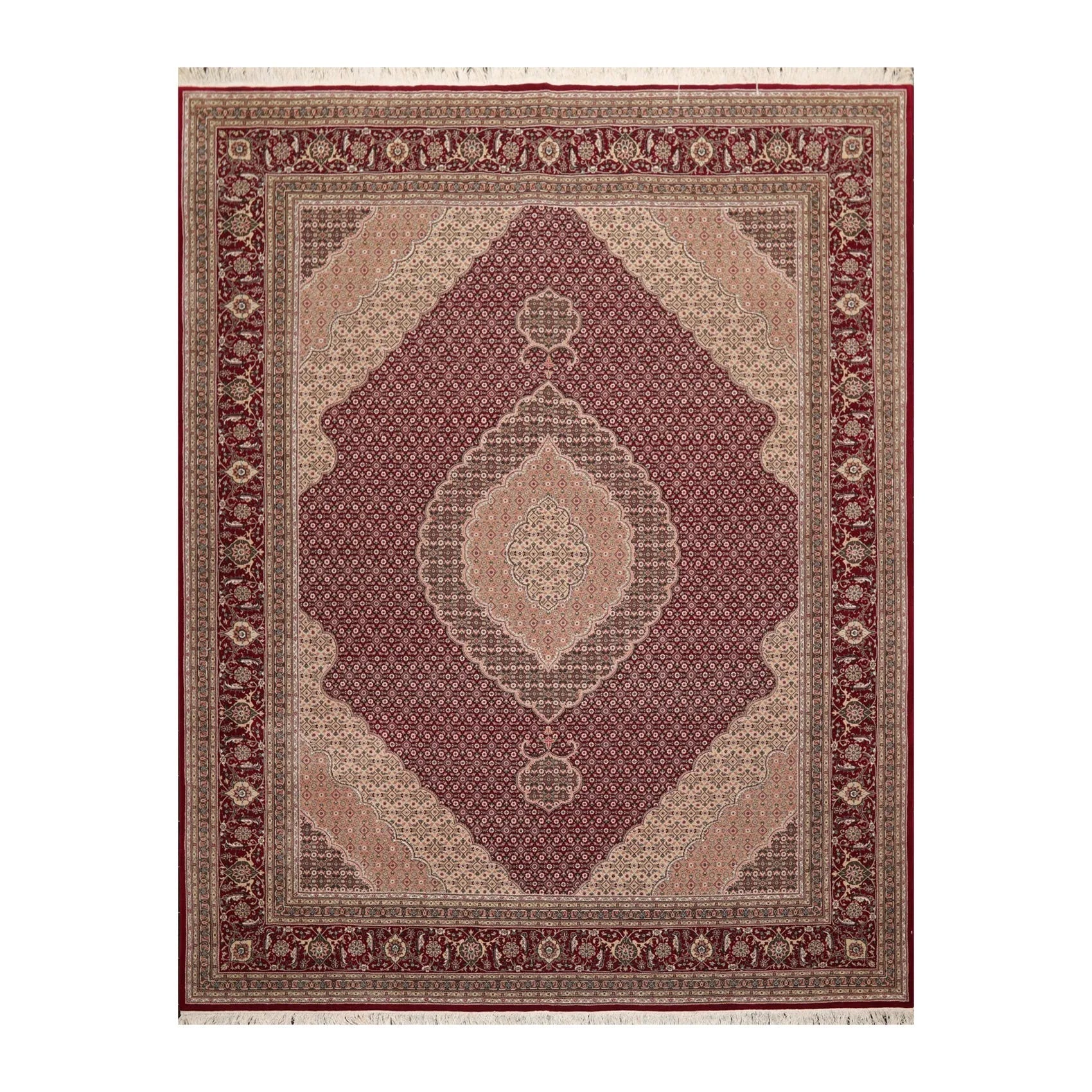 8x10 Red, Beige Hand Knotted Wool and Silk Fish Mahi Traditional 250 KPSI Oriental Area Rug