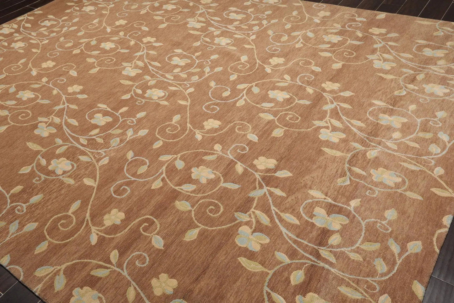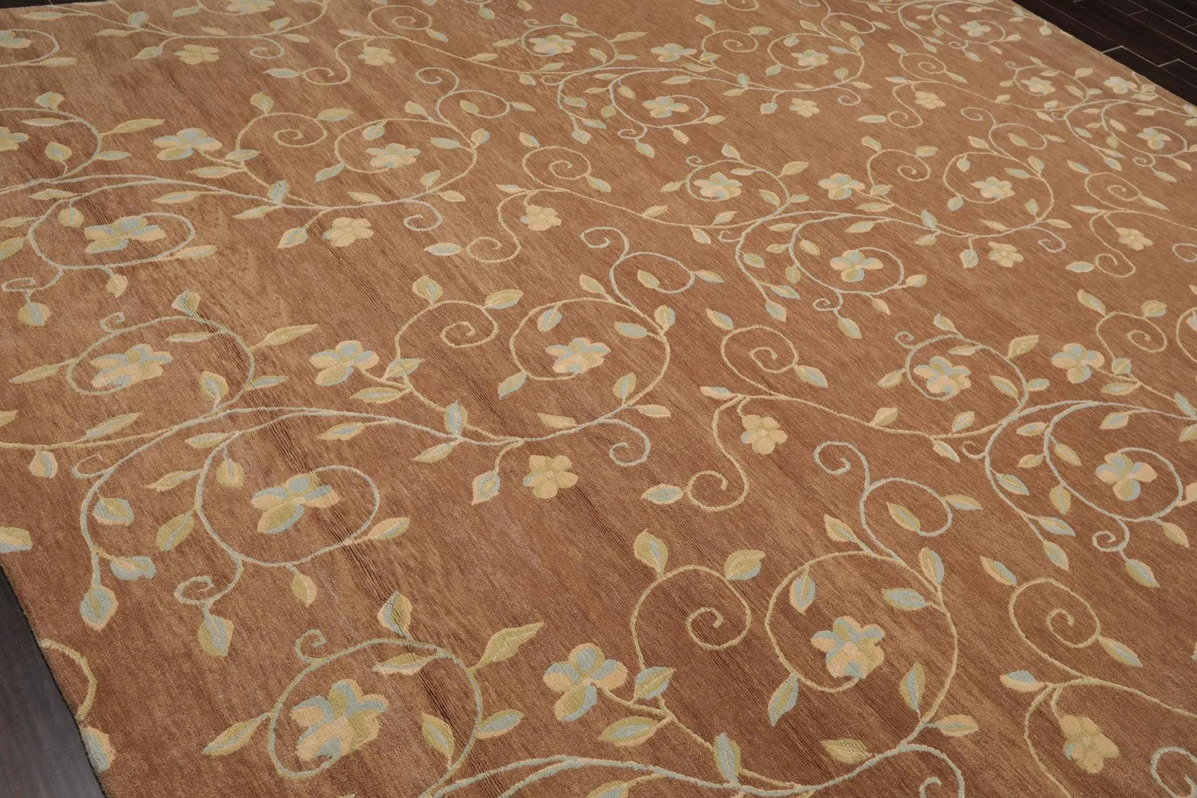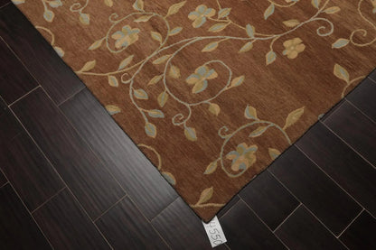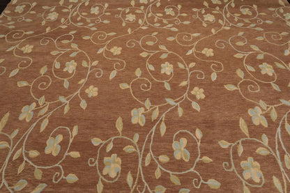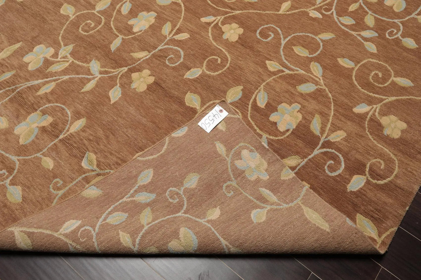 9' x 12' Hand Knotted Tibetan 100% Wool Transitional Muted Area Rug Brown