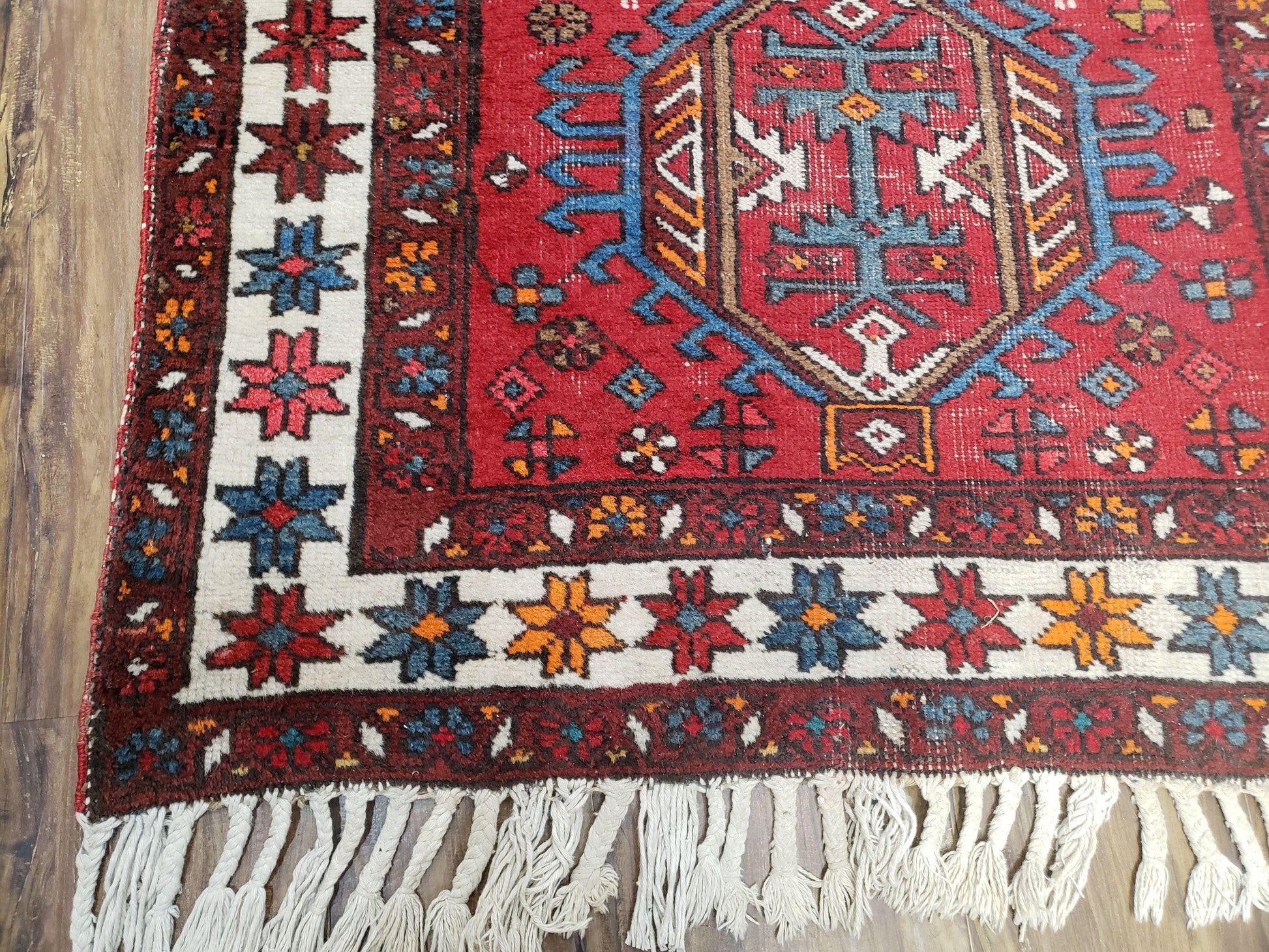 Antique Persian Heriz Karajeh Runner Rug, Red, Hand-Knotted, Wool, 3' 3" x 10' 11"