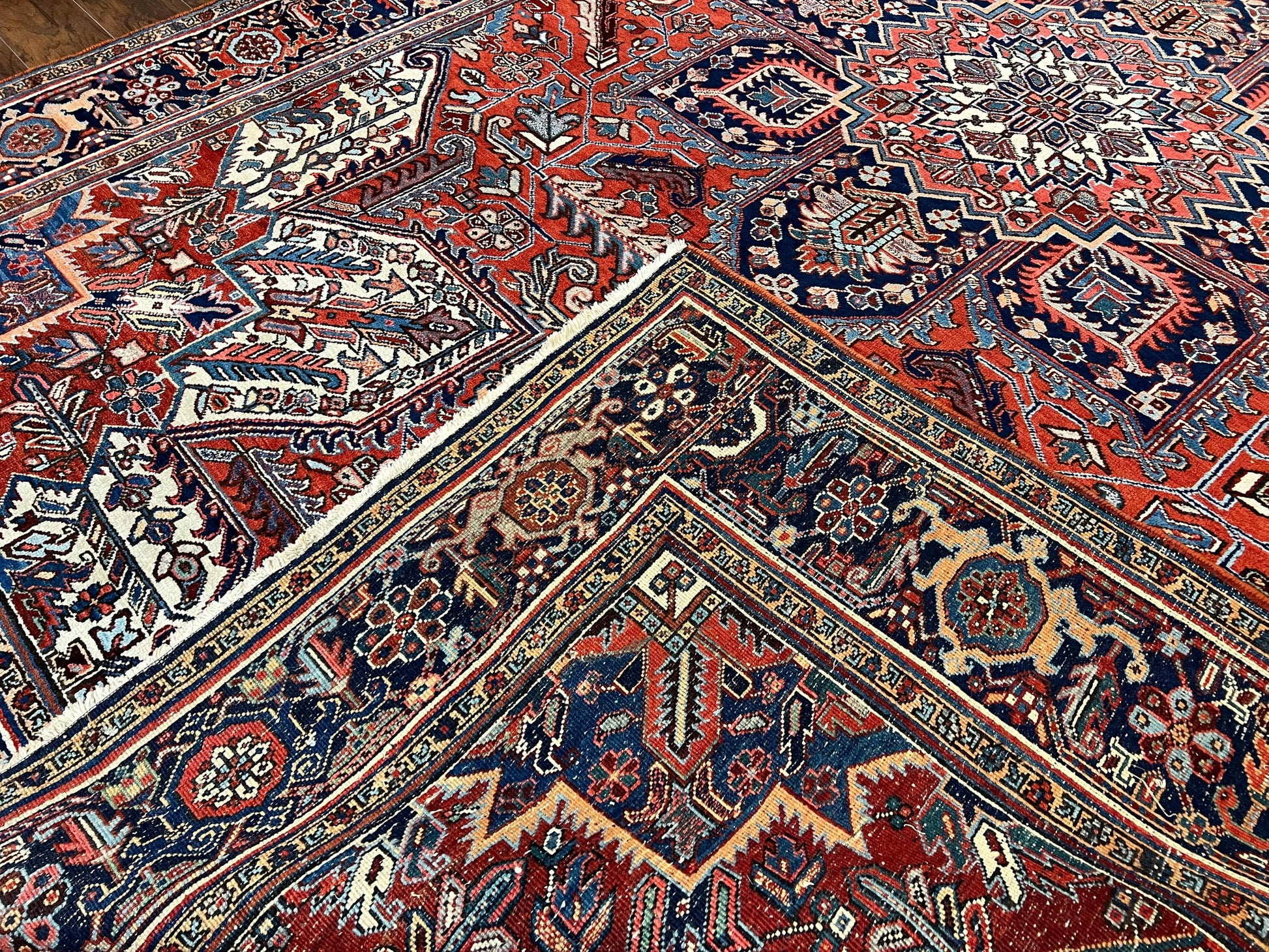 Antique Persian Heriz Rug – 11x16 Palace Size, Geometric Medallion, 1920s