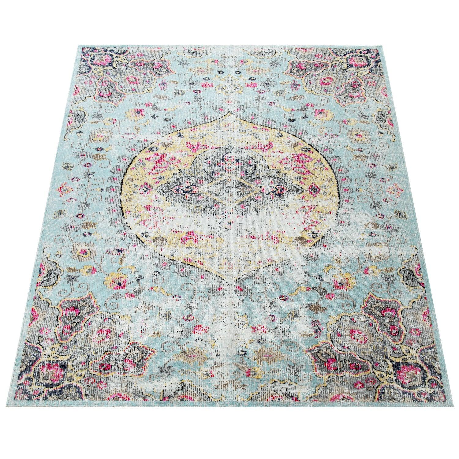 Blue Outdoor Rug Oriental Design Pastel Colors