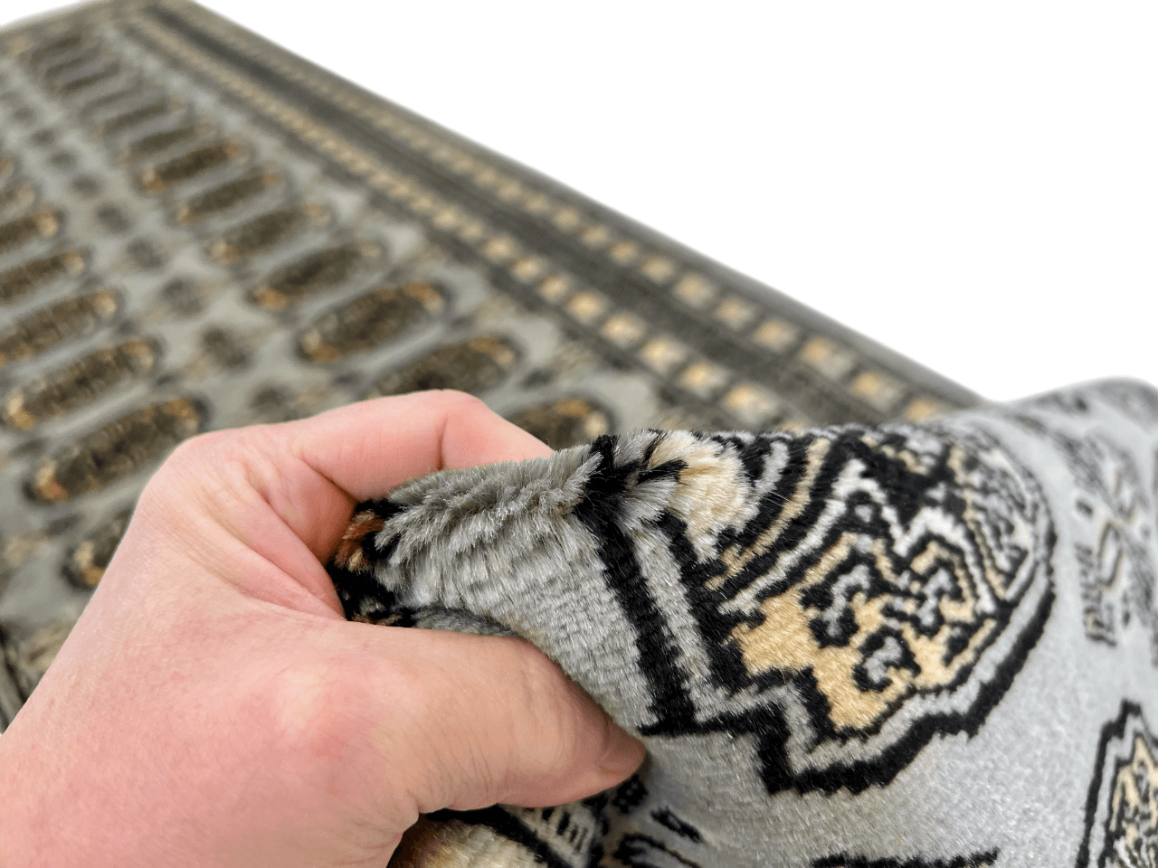 Expertly hand-knotted in Pakistan, the Bokhara gray rug boasts a classic and timeless design, updated with a modern twist in color. This 10' runner showcases a traditional Bokhara design, perfect for adding an elegant touch to any space.