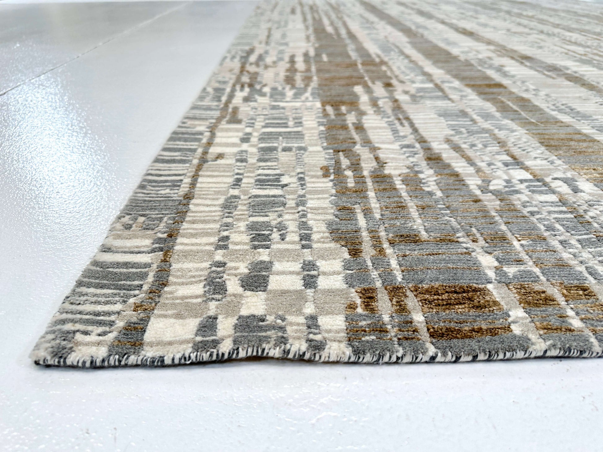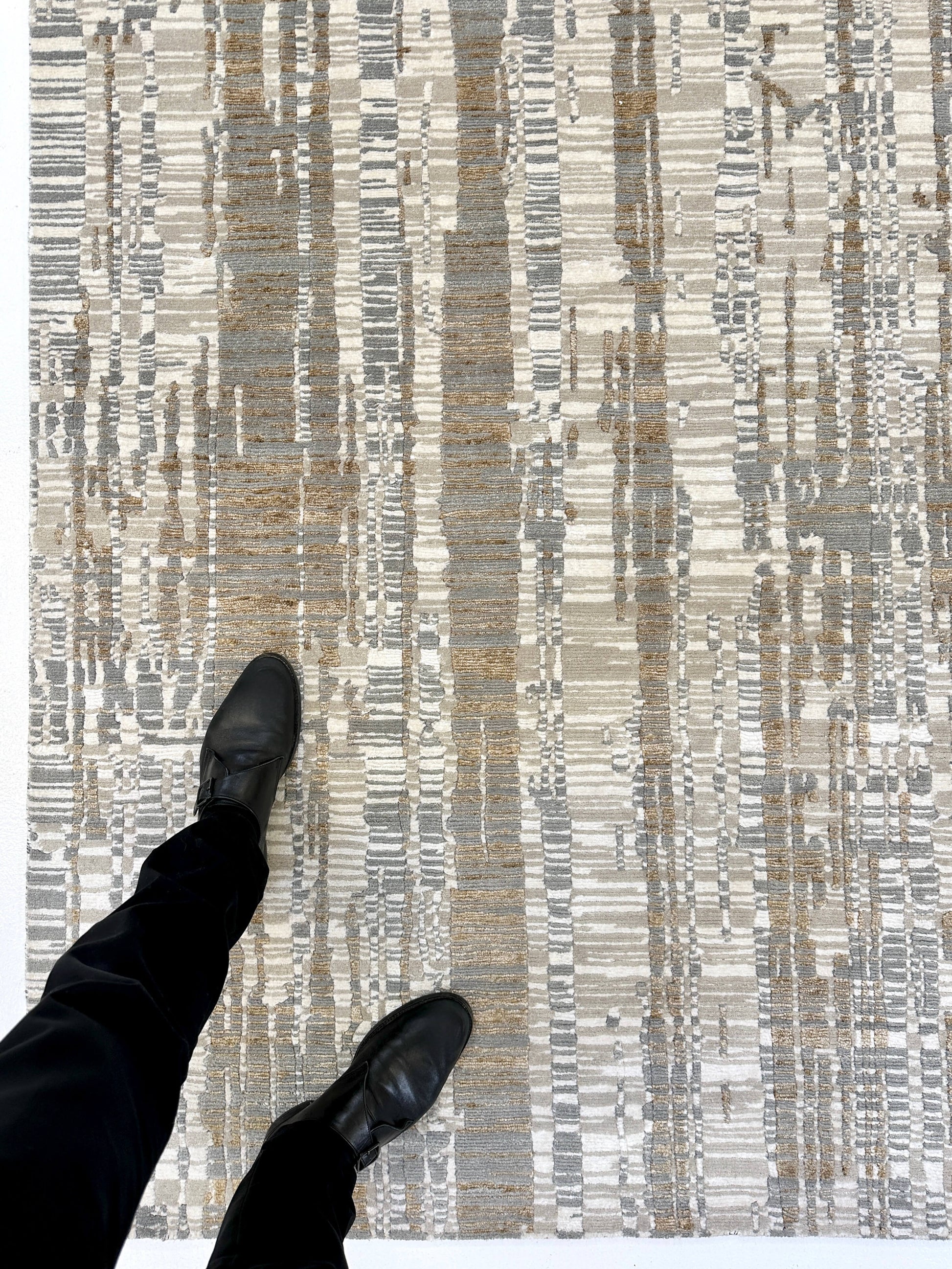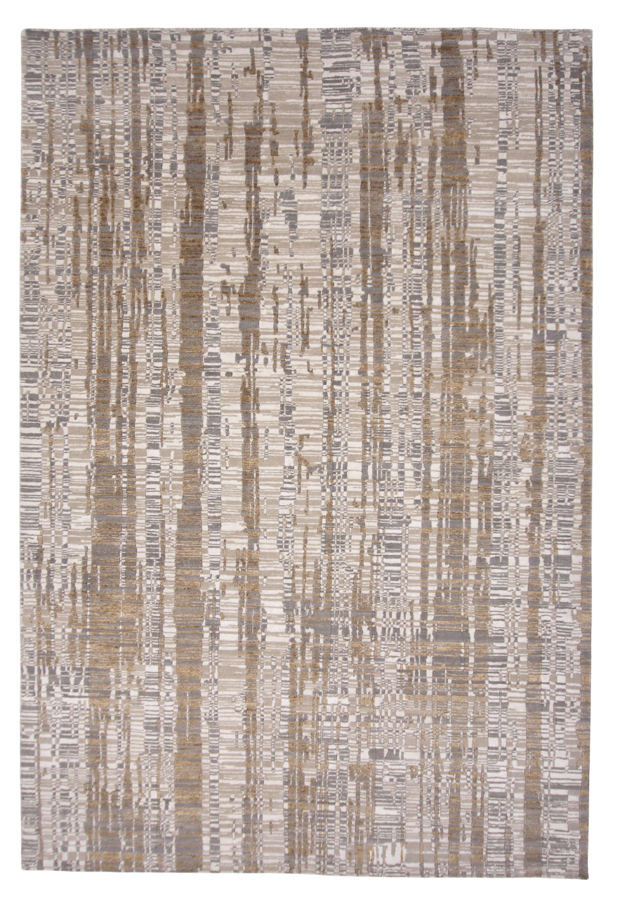 This exquisite 6x9 rug merges contemporary design with time-honored Tibetan hand-knotting techniques, crafted by master artisans in India. Hand-carved details create striking dimensional texture across a sumptuous blend of wool and bamboo viscose fibers. The ivory and gold palette radiates understated luxury, while the intricate knotwork reveals new layers of sophistication with every glance. A distinguished investment piece that anchors refined interiors with authentic craftsmanship and enduring beauty.