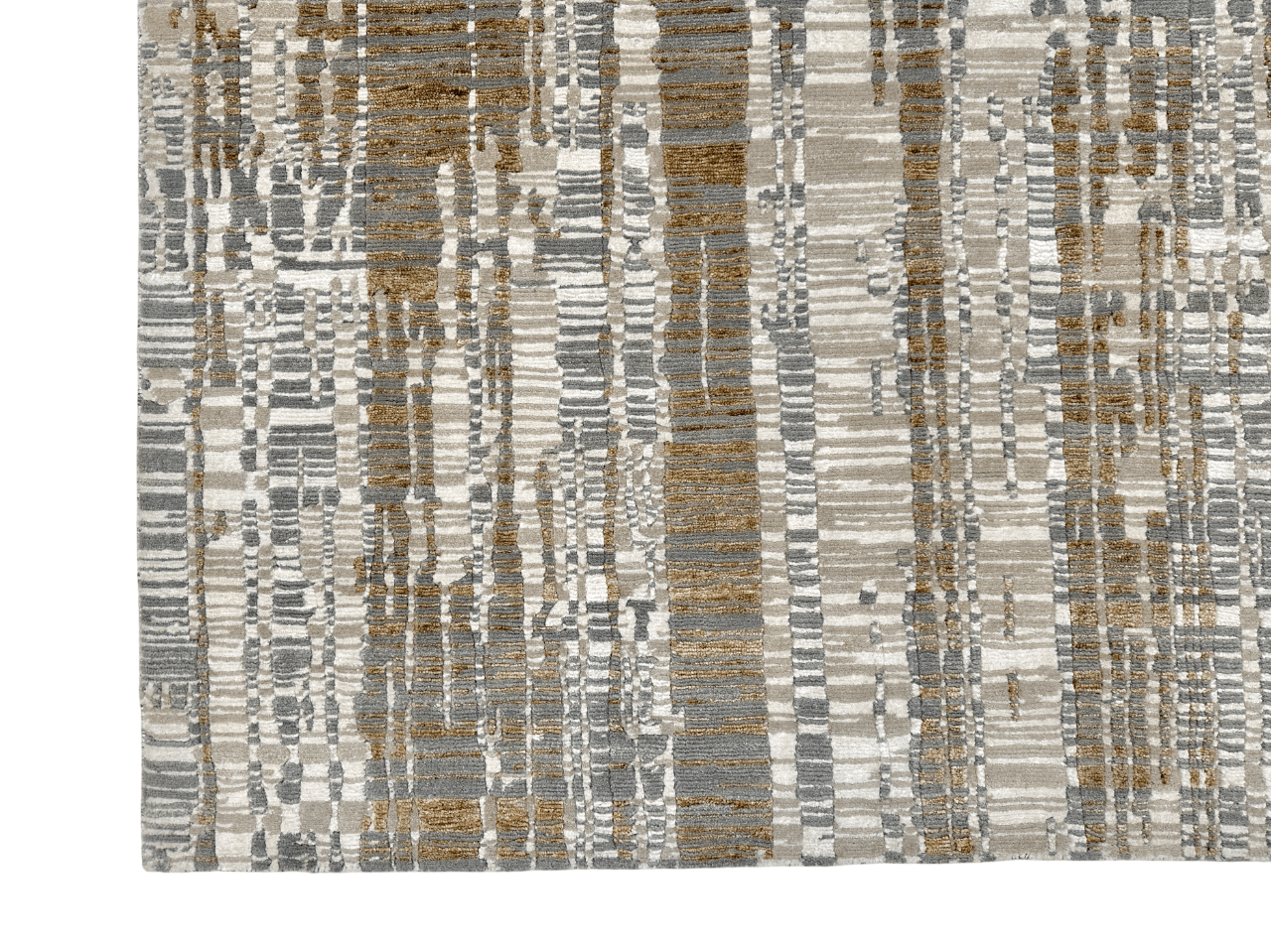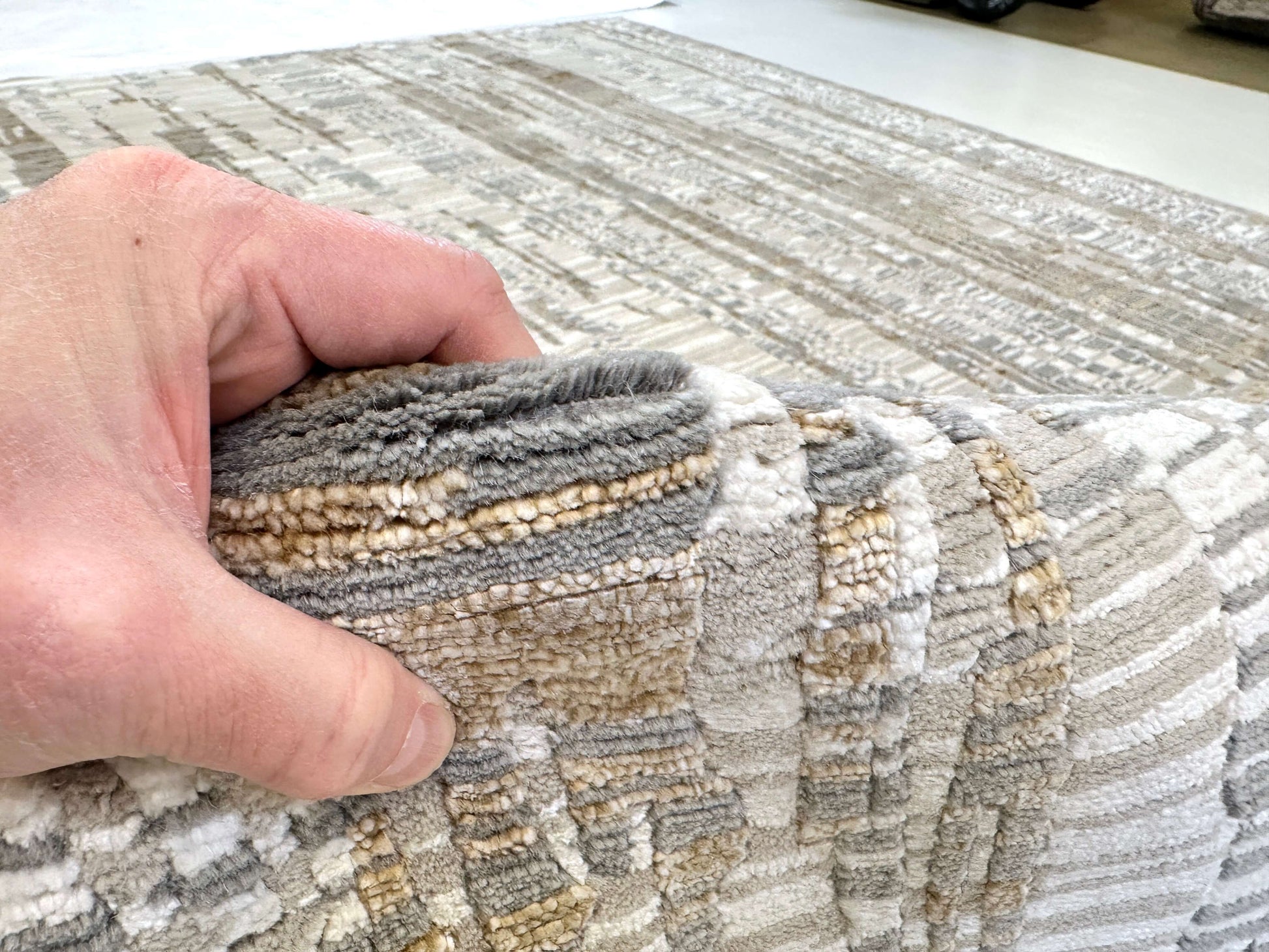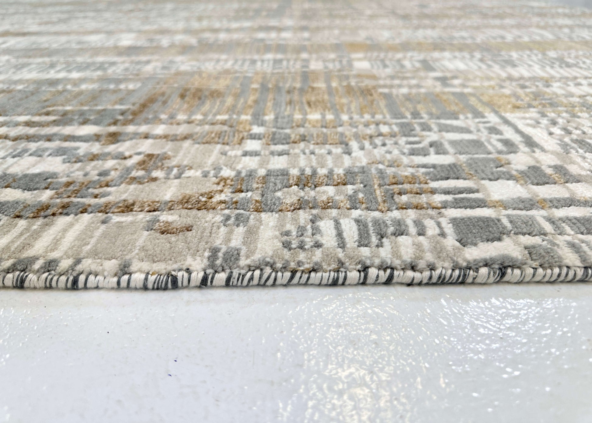 This exquisite 6x9 rug merges contemporary design with time-honored Tibetan hand-knotting techniques, crafted by master artisans in India. Hand-carved details create striking dimensional texture across a sumptuous blend of wool and bamboo viscose fibers. The ivory and gold palette radiates understated luxury, while the intricate knotwork reveals new layers of sophistication with every glance. A distinguished investment piece that anchors refined interiors with authentic craftsmanship and enduring beauty.