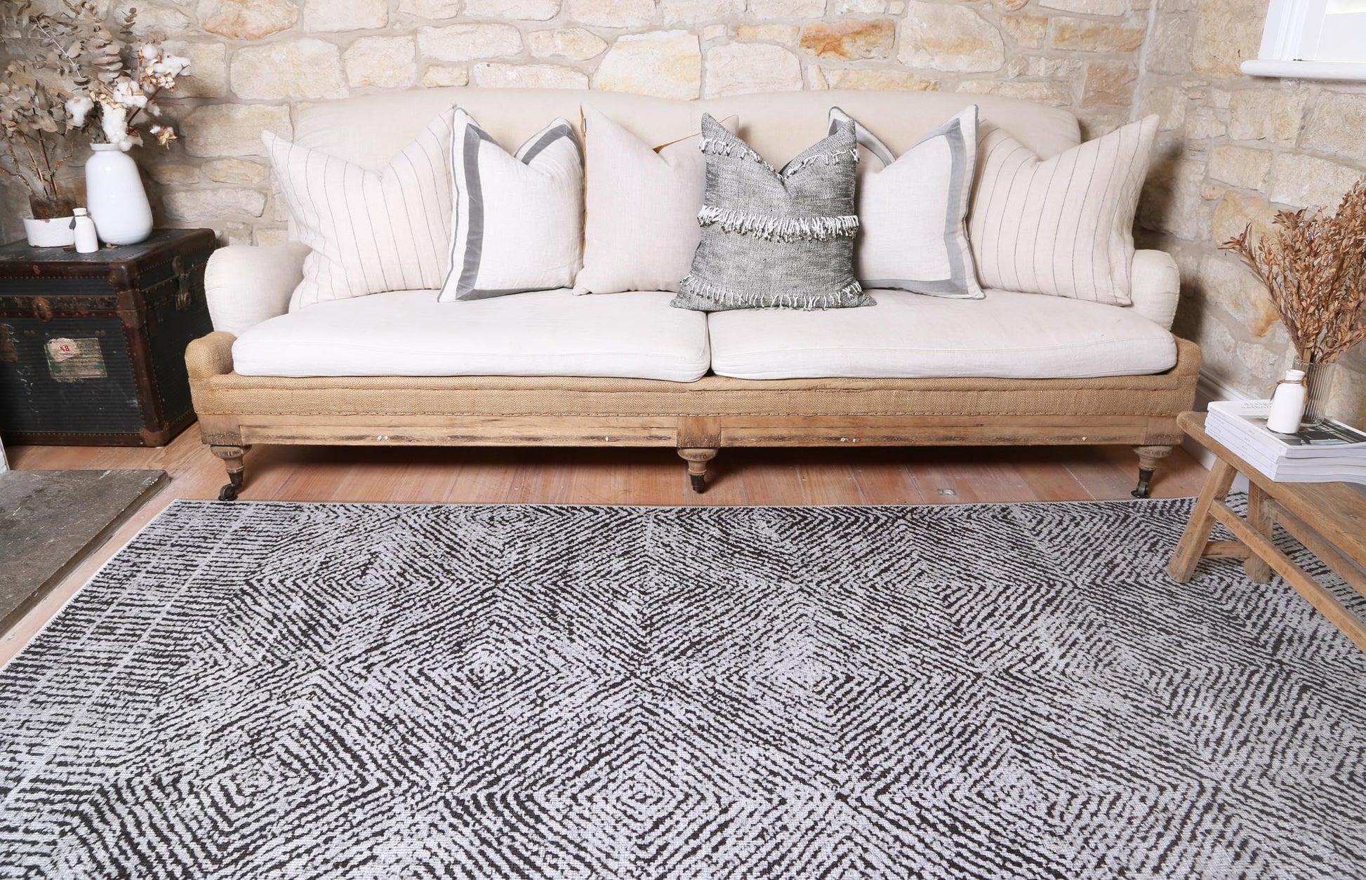 Lauro is the geometric rug that will never go out of style. The bold design demands all your attention and so this modern rug works well when it is paired with simple and modern furnishings in your home. Perfect as a living room rug or a dining room rug, Lauro hides the mess of day to day life well.
