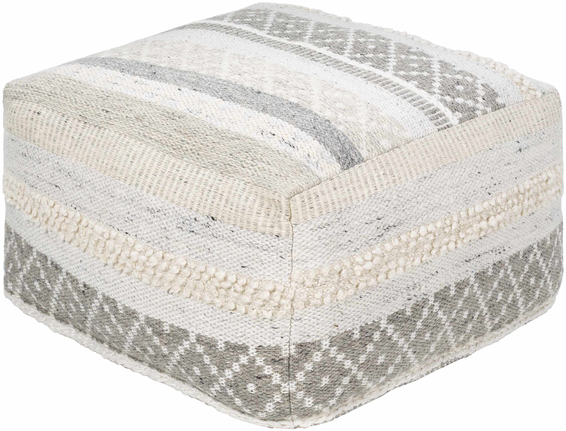 Geyser Woven White Gray Cotton Pouf